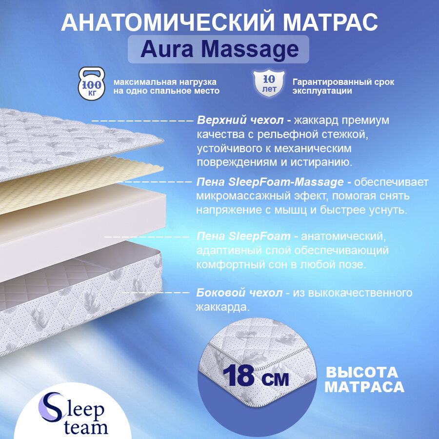 Матрас SleepTeam Aura Massage 175х180, для кровати, высота 17 см, беспружинный с массажным эффектом, двуспальный