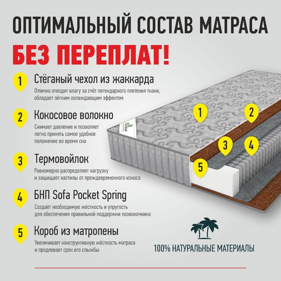 Матрас Матрасбург "MAGNUS", независимые пружины, двусторонний, 80х195х20 см