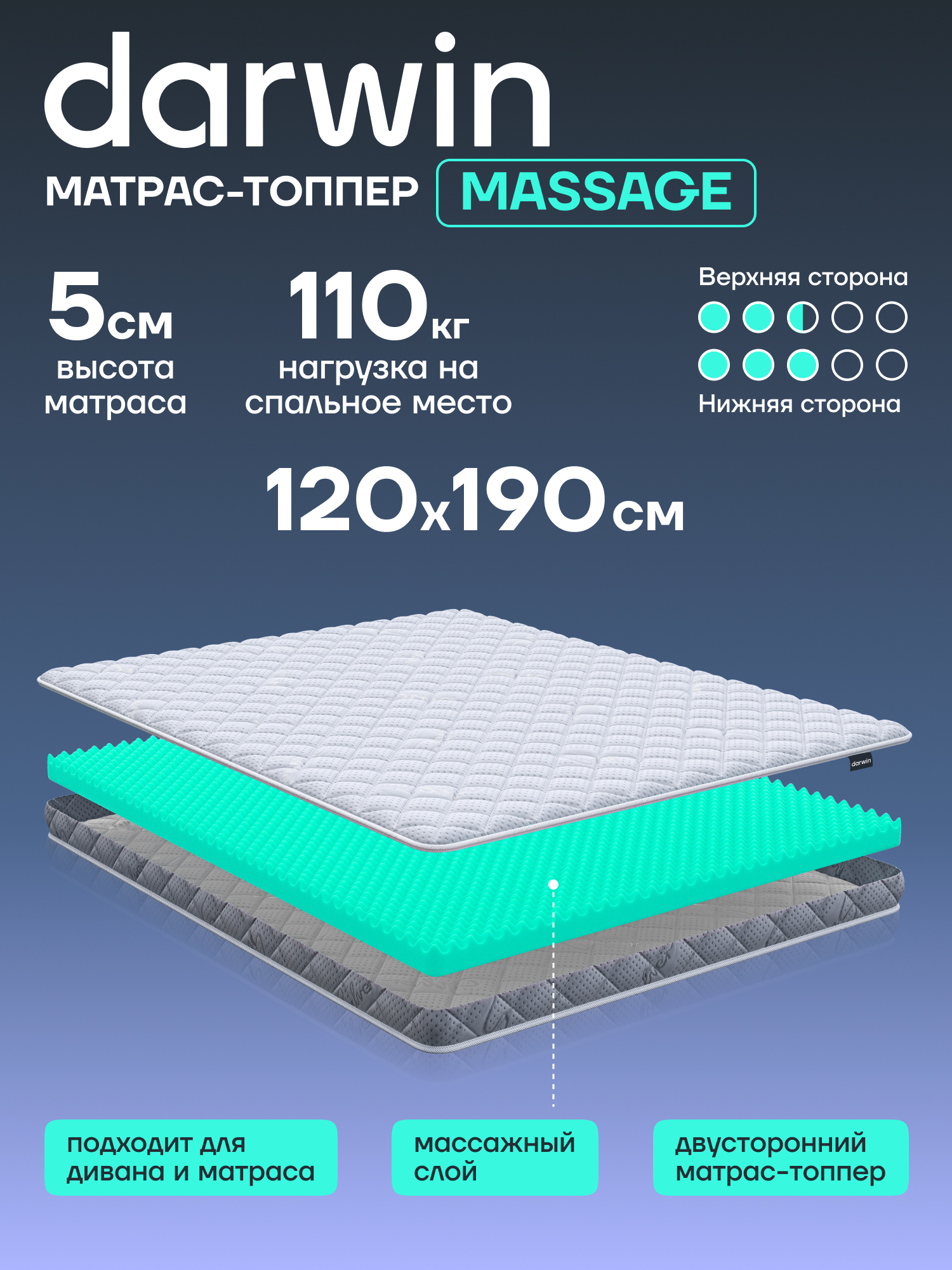 СохранитьМатрас-топпер Darwin Massage 120х190 см, двухсторонний, с массажным эффектом, анатомический, высота 5 см интересное: