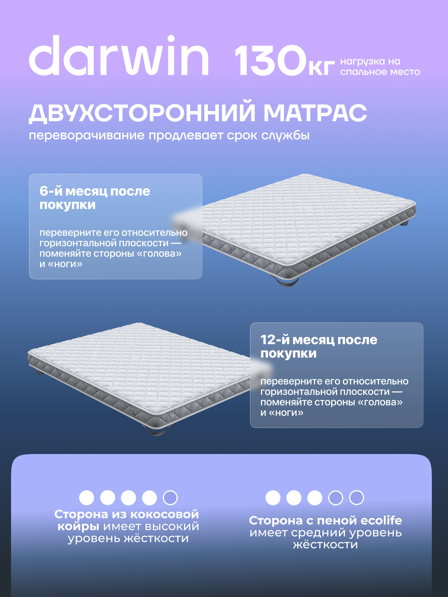 СохранитьМатрас-топпер Darwin Double Max 120х200 см, с кокосовой койрой, двухсторонний с разной жесткостью сторон, высота 7 см интересное: