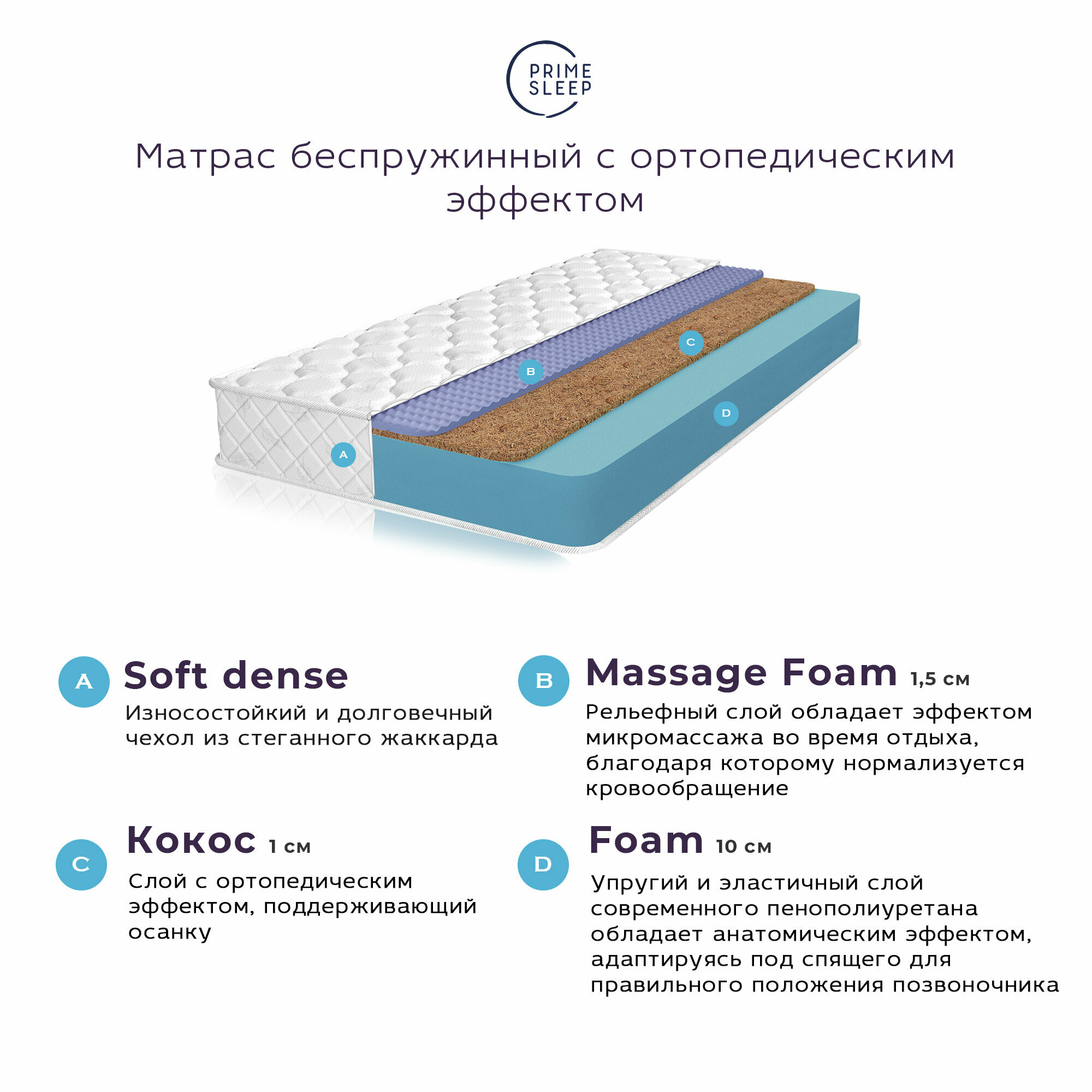 Матрас Prime Sleep Foam Prope 115х190, ортопедический, беспружинный, эффект массажа, разная жесткость сторон