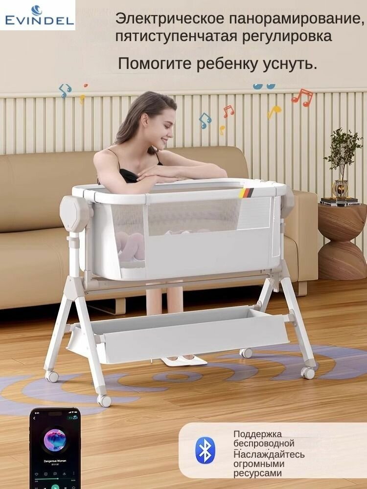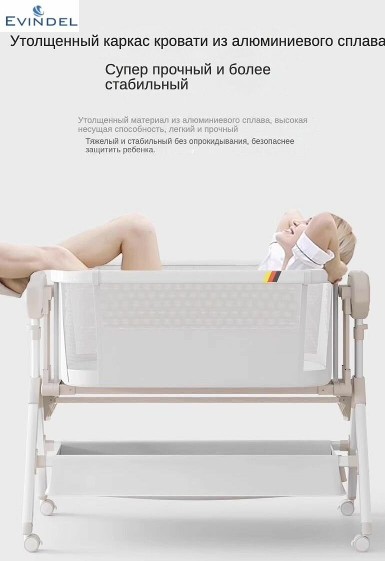 Детская кроватка EVINDEL, матрас в комплекте, поперечное качание, бортики интересное: