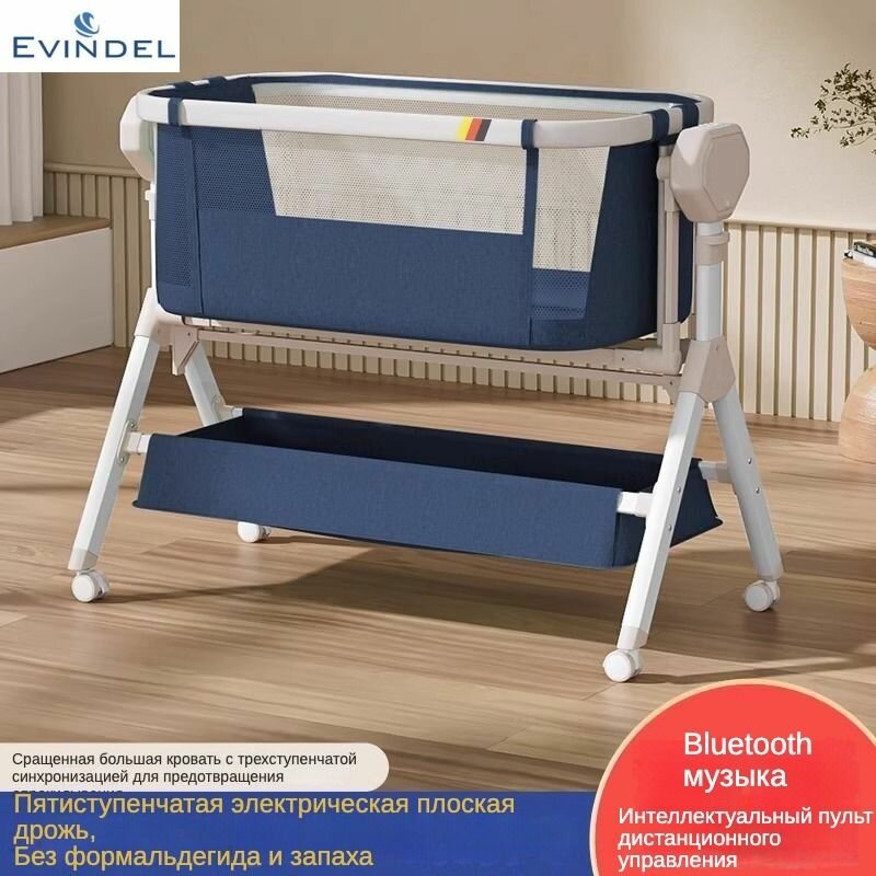 Колыбель EVINDEL, металл, розовый, качание маятник, с матрасом, москитной сеткой, пультом ДУ