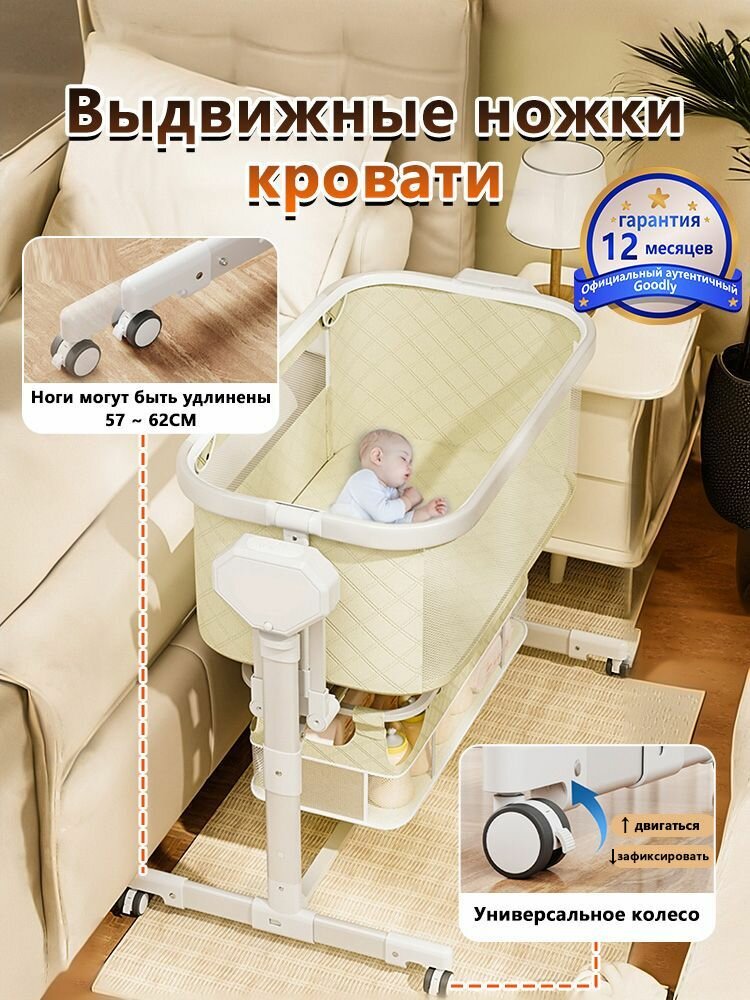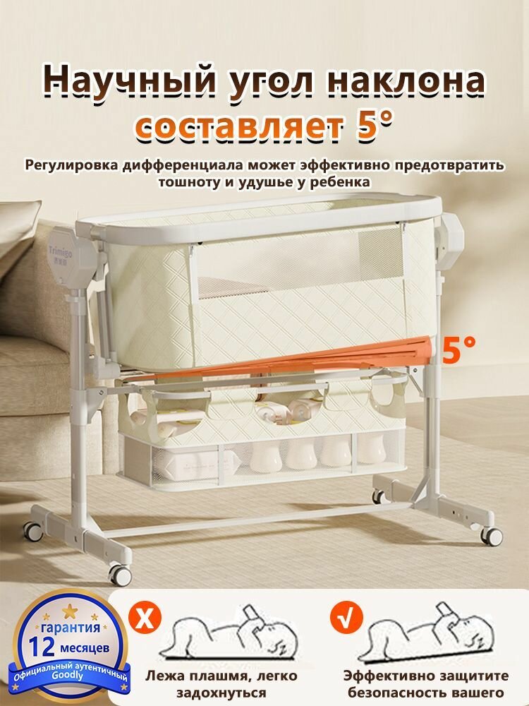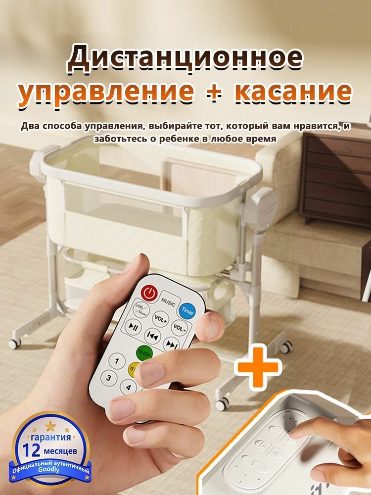 Приставная кроватка с электро качанием WQGD-A56, с функцией автоматического качания, темно-серый интересное: