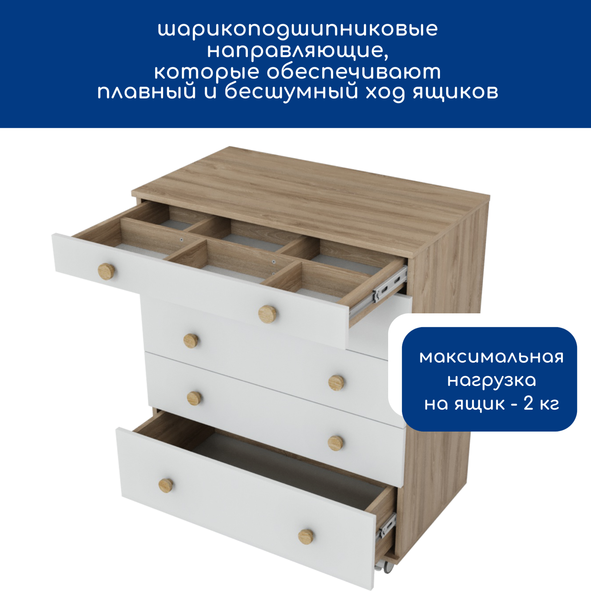 Купить Комод детский с органайзером и матрасиком, 5 ящиков, ЛДСП, дуб белый