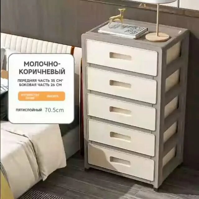 Комод "Новейший", пластик, 5 ящиков, на колесах, светло-коричневый интересное: