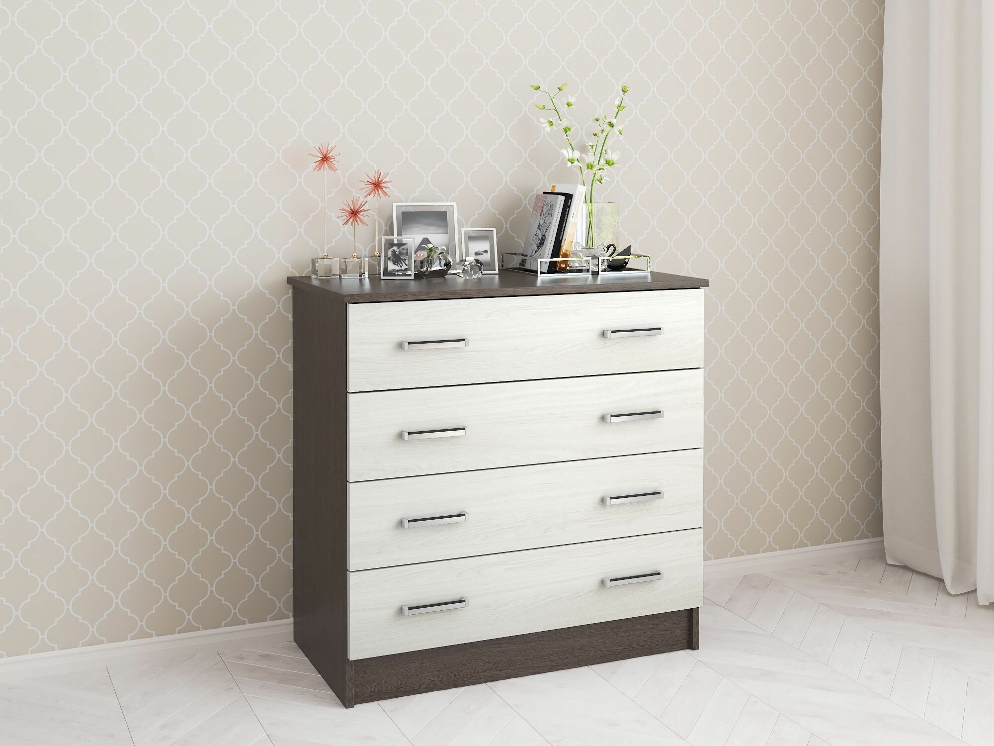 Купить Комод Катрин-3 с 4-мя ящиками 82х81х43см Венге/Ясень анкор светлый
