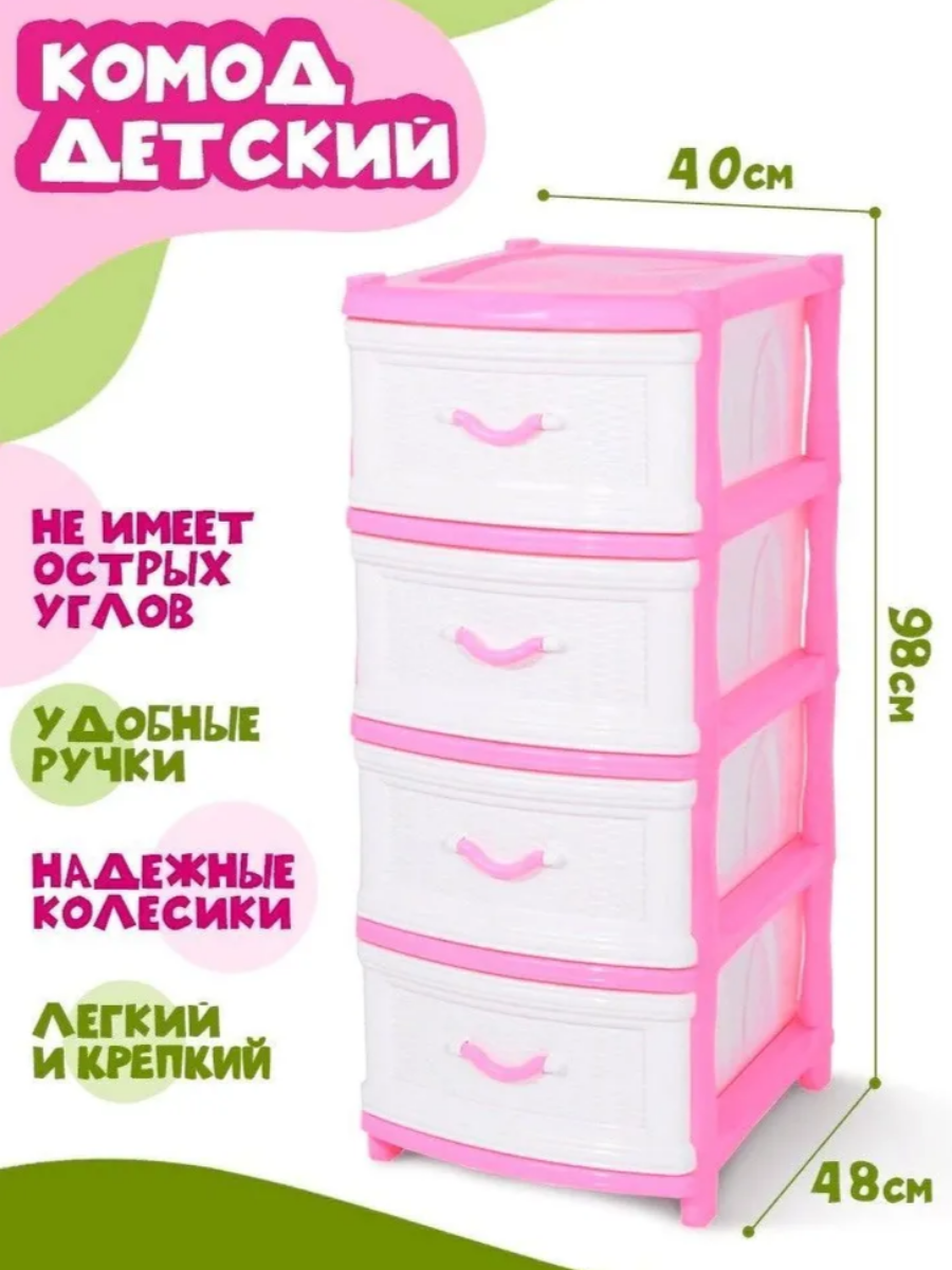 Комод elfplast "Классика" 4-х секционный для вещей и игрушек пластиковый с ящиками, (белый/розовый) 068 интересное: