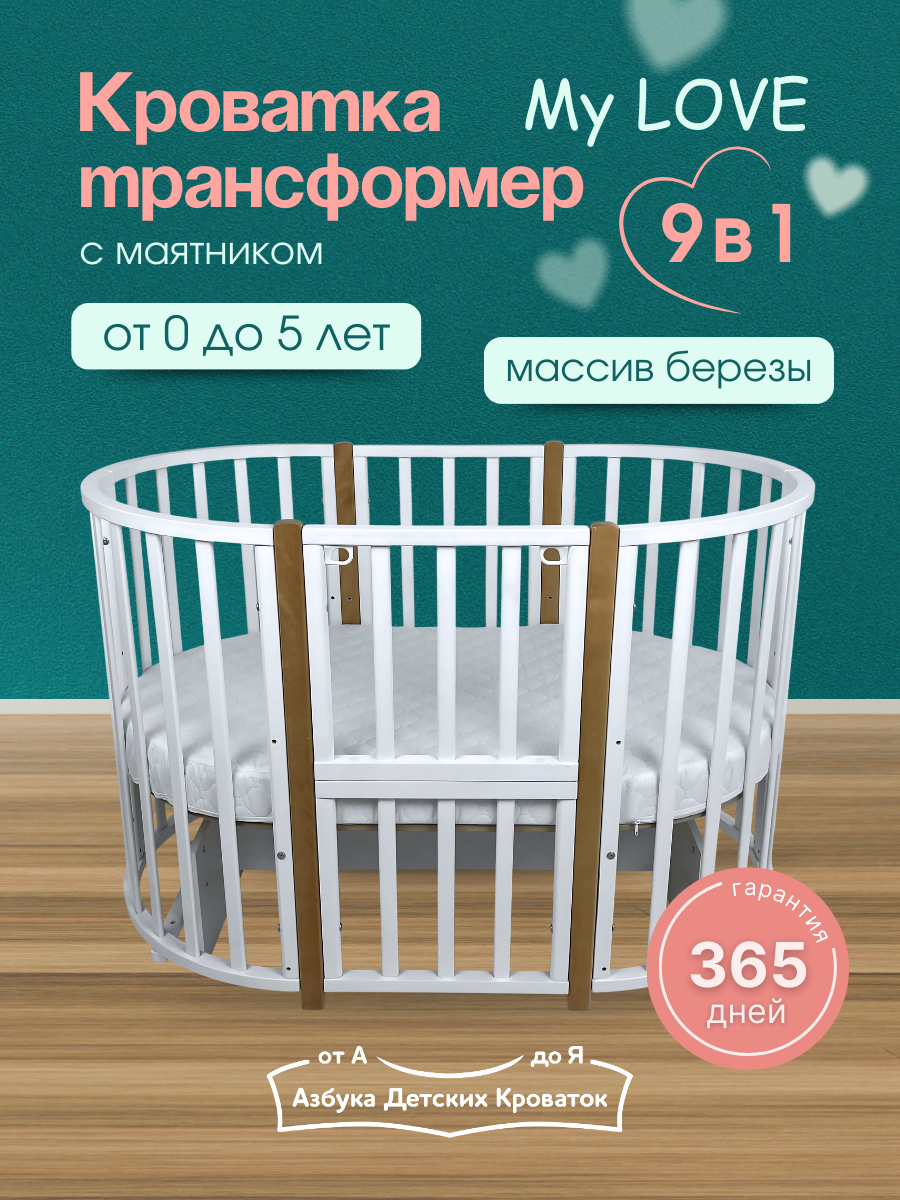 Купить Кроватка для новорожденного 9 в 1 с маятником My Love