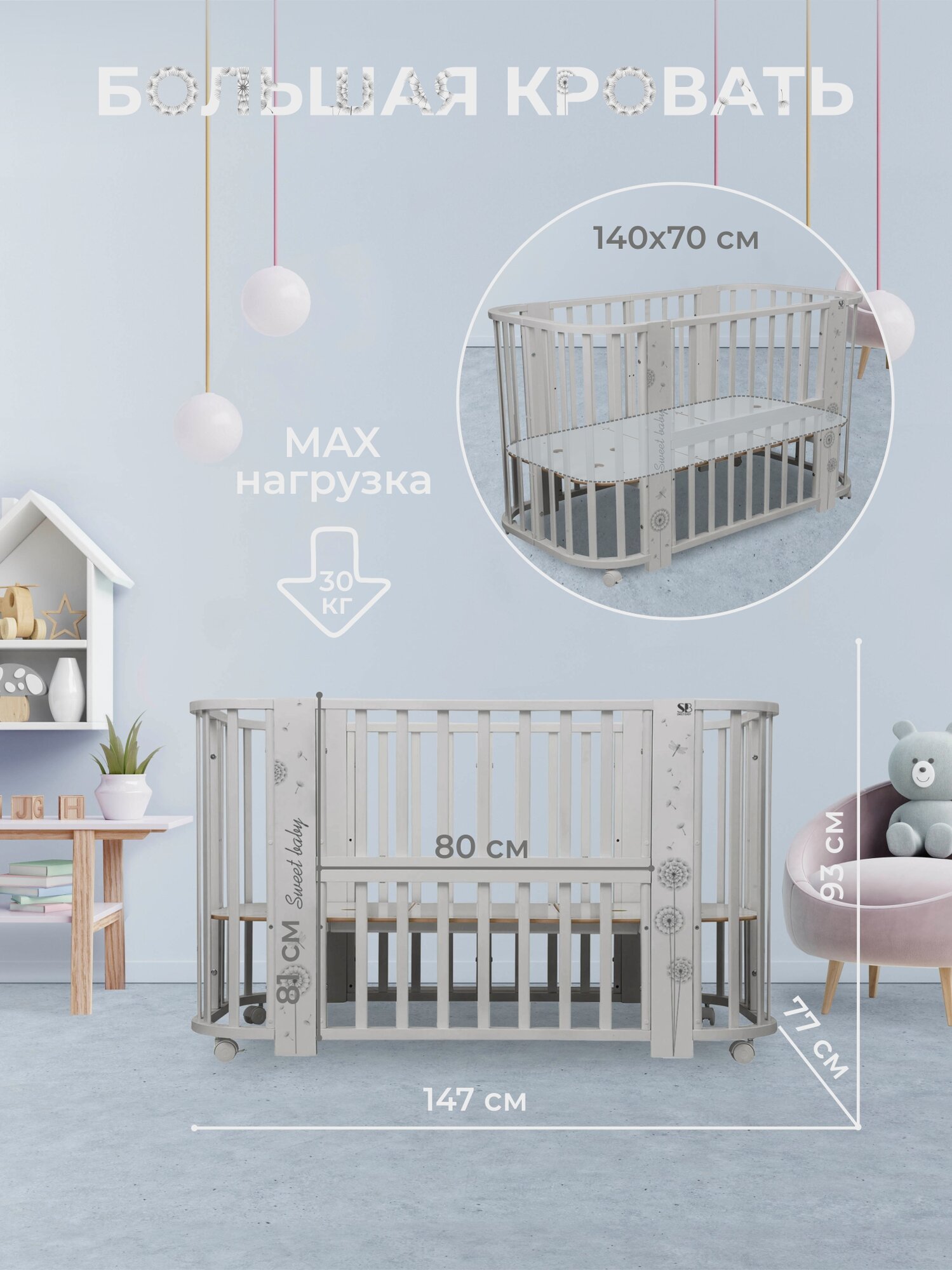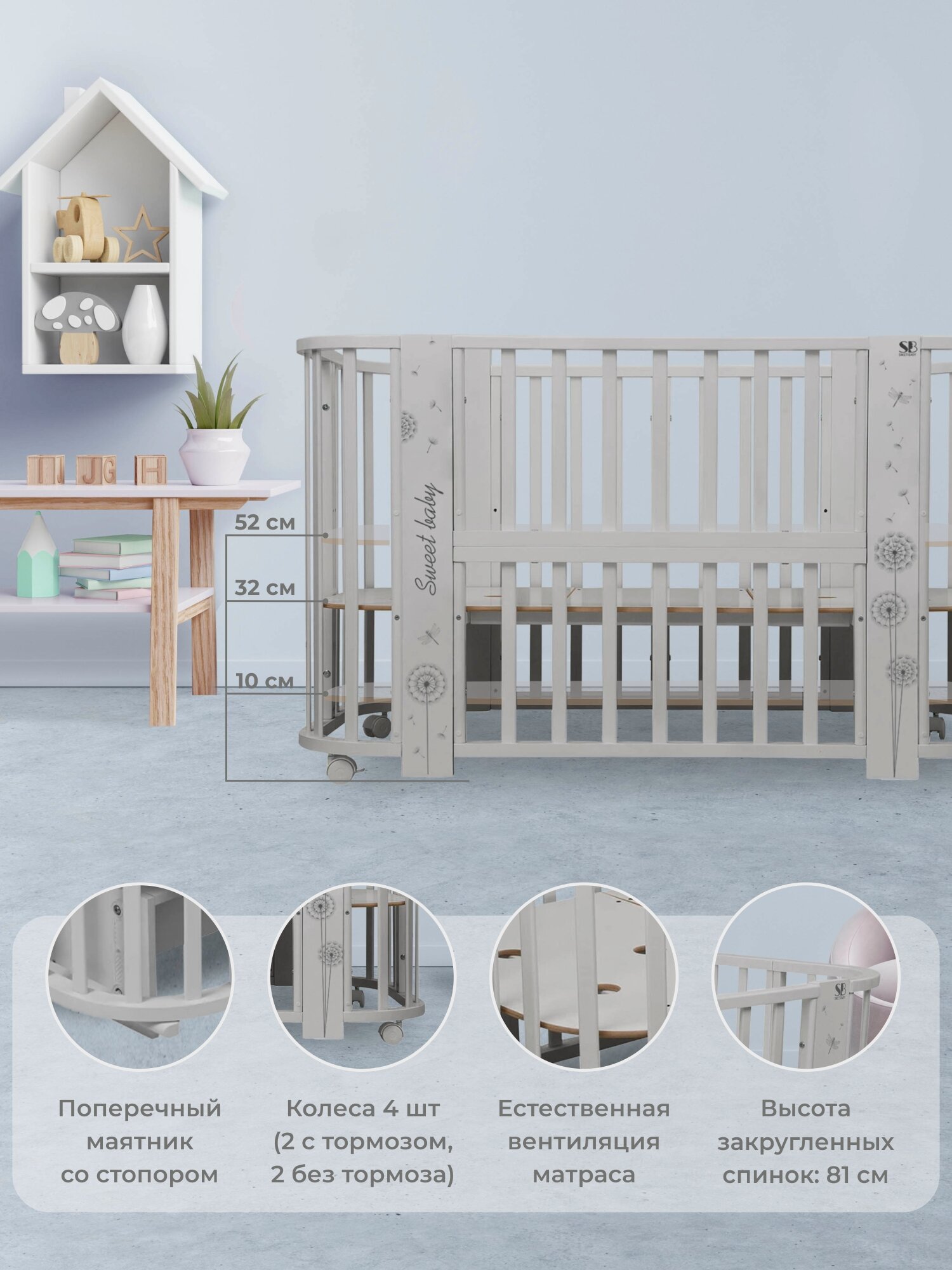 Кровать детская 5 в1 Sweet Baby Arte Серая/одуванчик интересное: