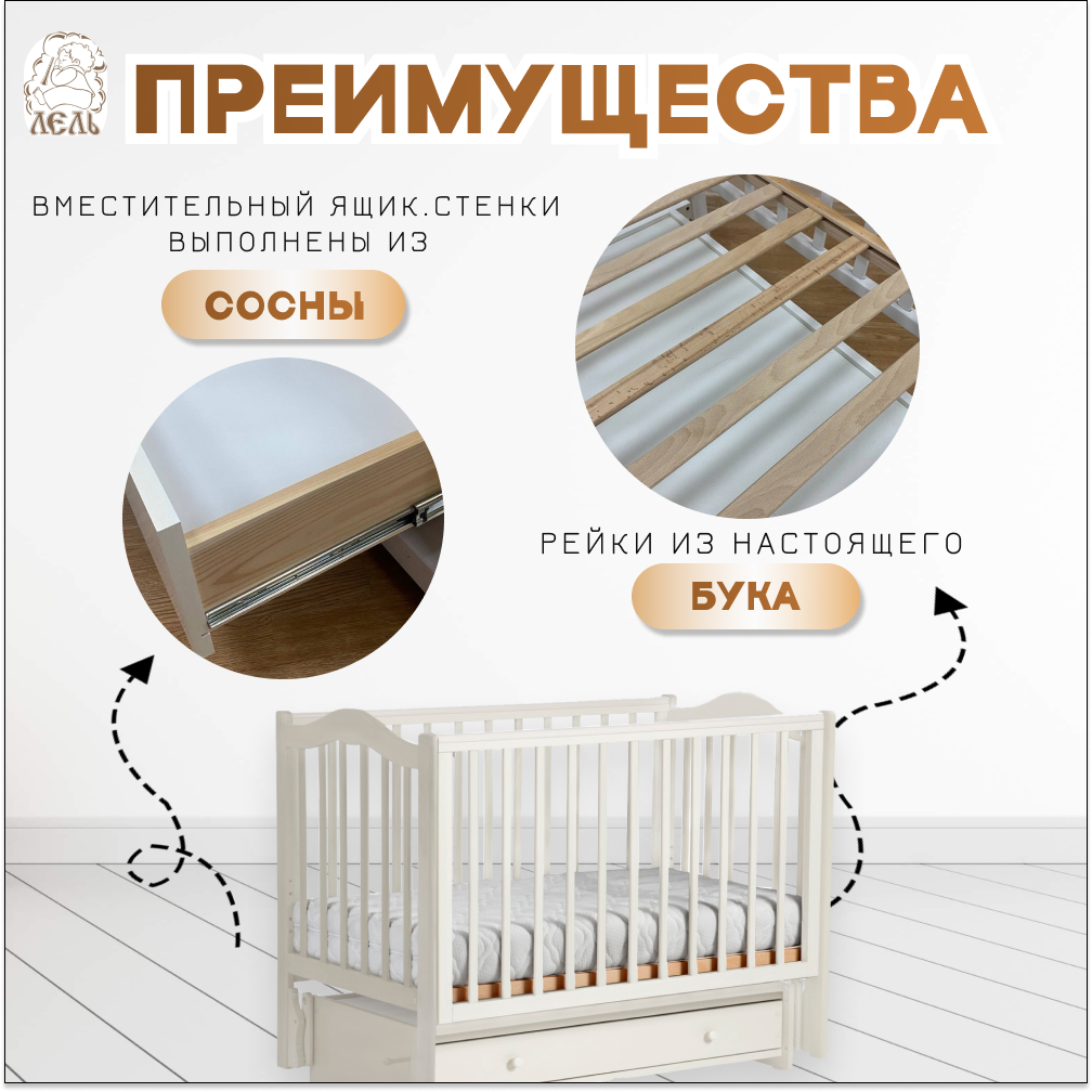 Детская кроватка лель (Кубаньлесстрой) Кубаночка-1 БИ 37, классическая, универсальный маятник, белая интересное: