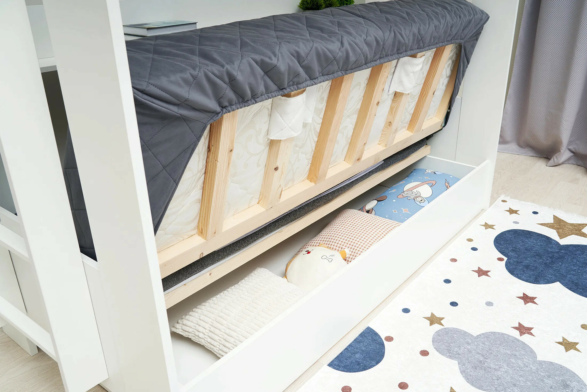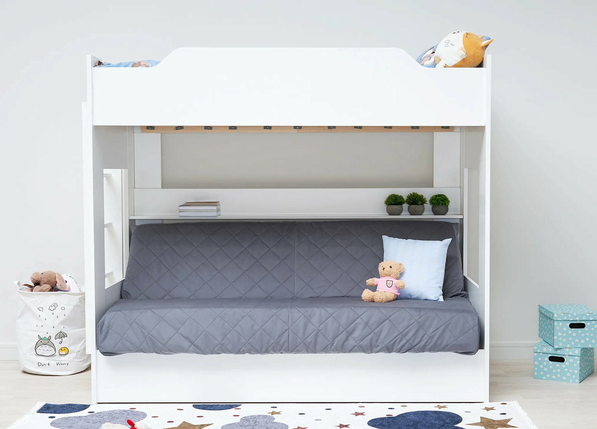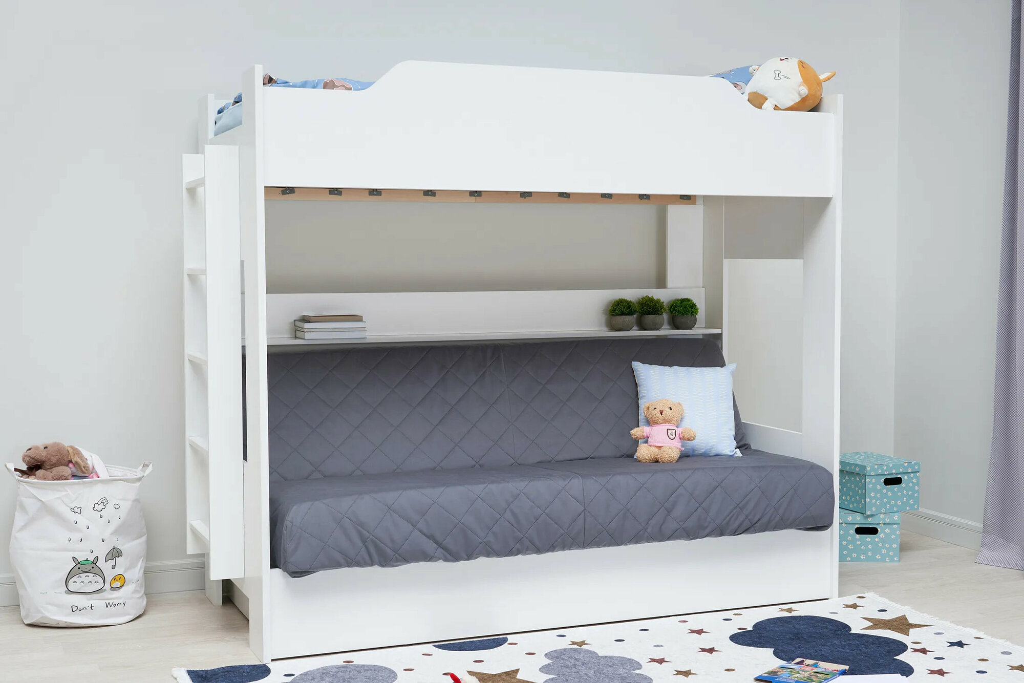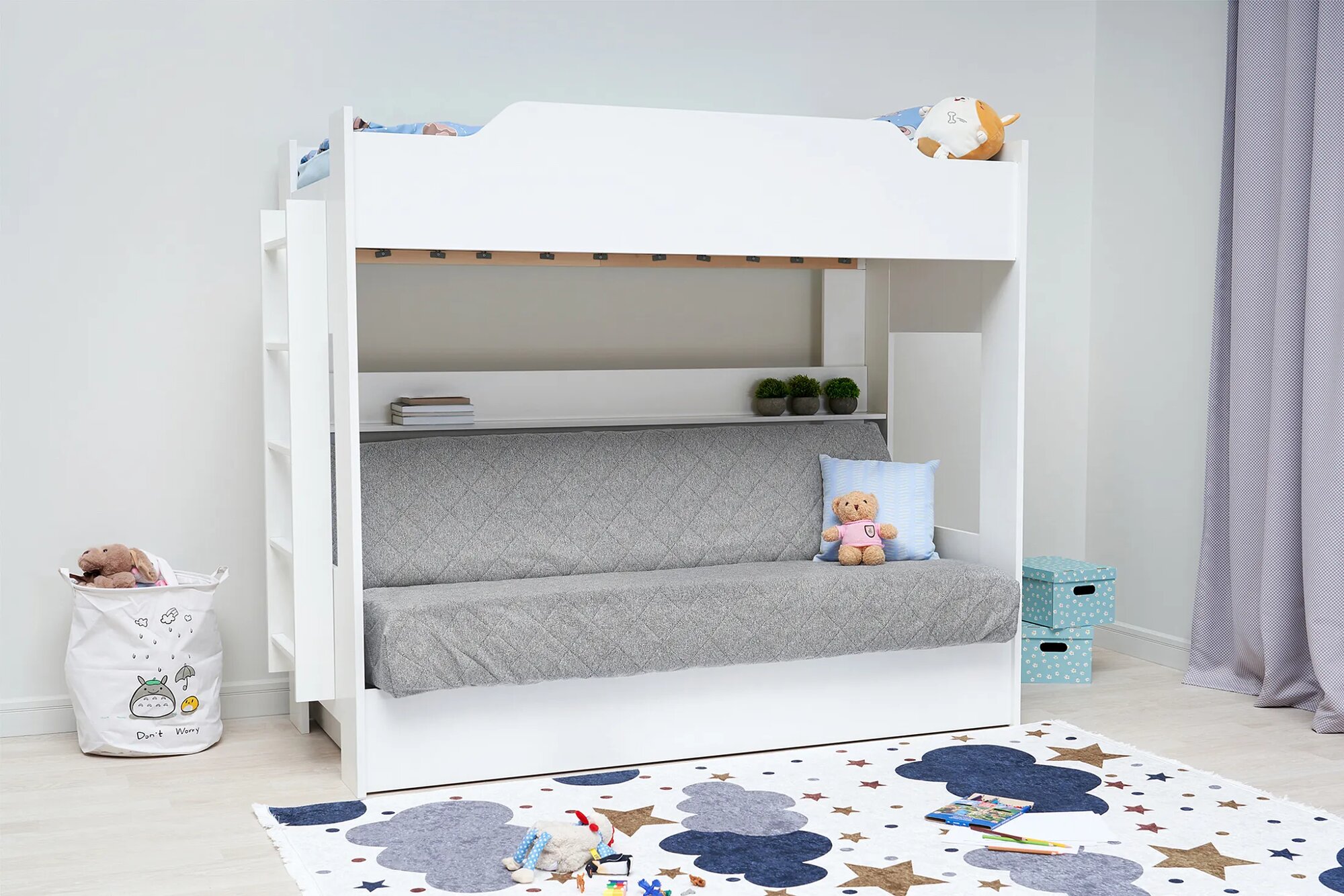 Двухъярусная кровать с диваном, чехол в ассортименте размер 1110(ш) х 1730(в) х 2050(г)
