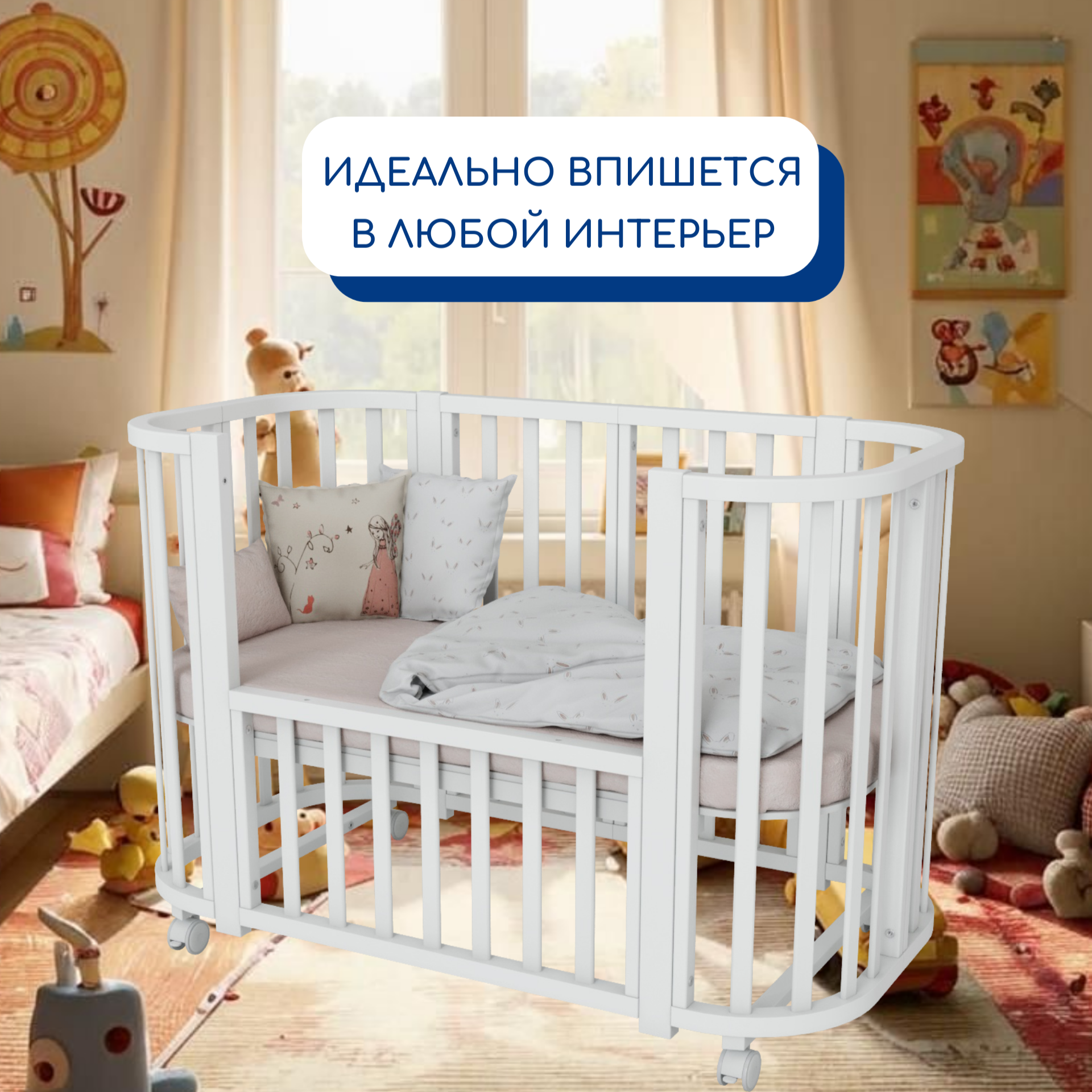 Кровать трансформер для новорожденных 6 в 1, цвет белый