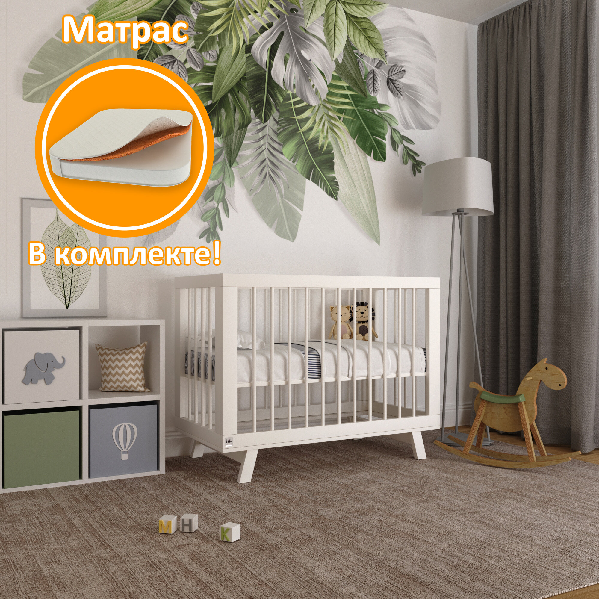 Кроватка для новорожденного Lillaland - модель Lilla Aria белая + Матрас DreamTex 120х60 см Lil-I-1.4-gift интересное: