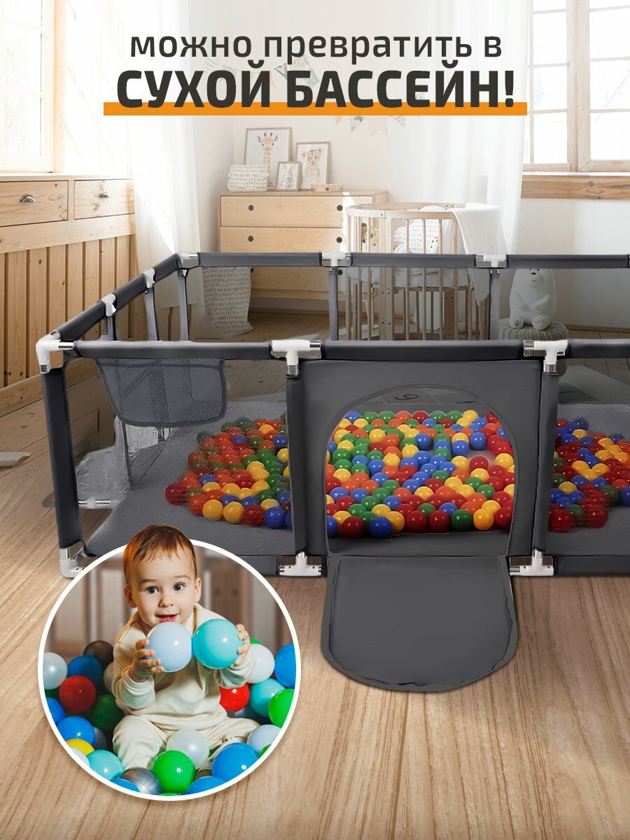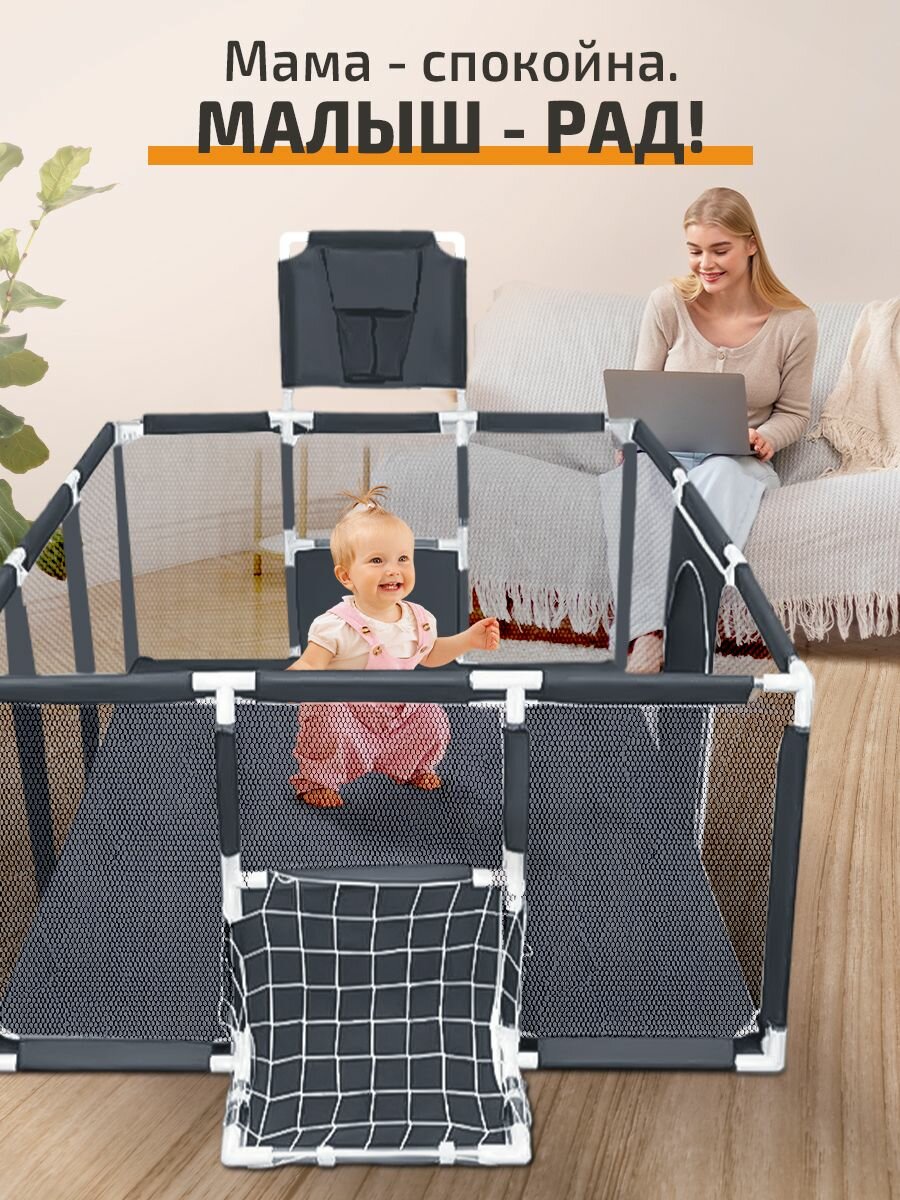 Манеж детский игровой большой усиленный складной 200*120*61 см для детей с баскетбольным кольцом и футбольными воротами интересное: