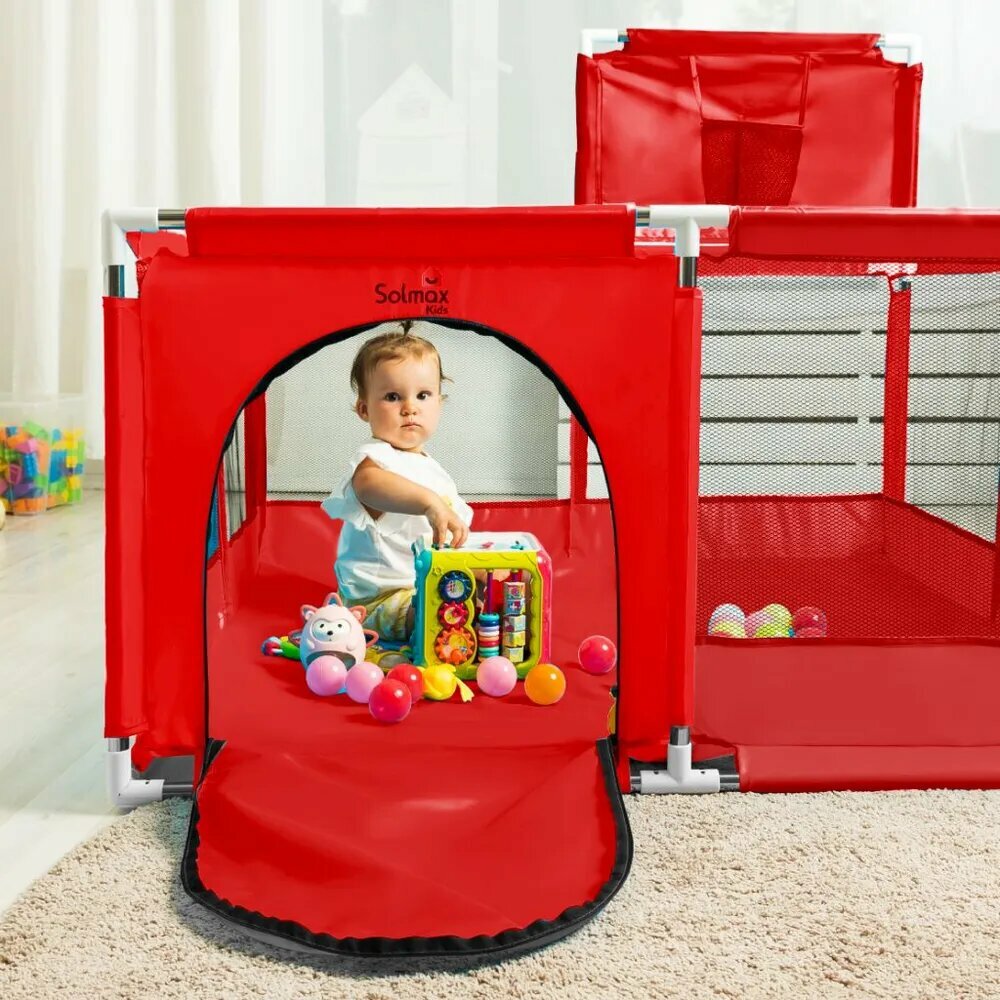 Манеж детский игровой складной, для новорожденных, усиленный каркас, с шариками в комплекте, красныйYZT интересное: