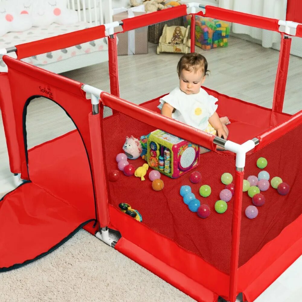 Купить Манеж детский игровой складной, для новорожденных, усиленный каркас, с шариками в комплекте, красныйYZT
