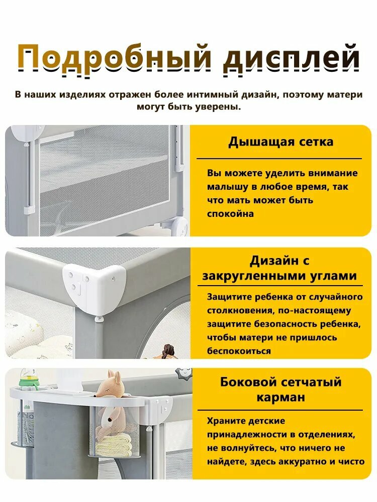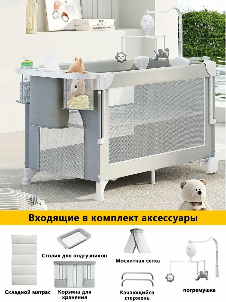 Манеж, кровать и кроватка приставная 3 в 1, 2 уровня, с рождения, складная с сумкой переноской, серый интересное: