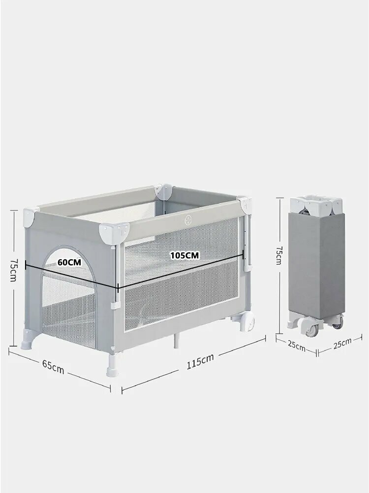 Купить Манеж, кровать и кроватка приставная 3 в 1, 2 уровня, с рождения, складная с сумкой переноской, серый