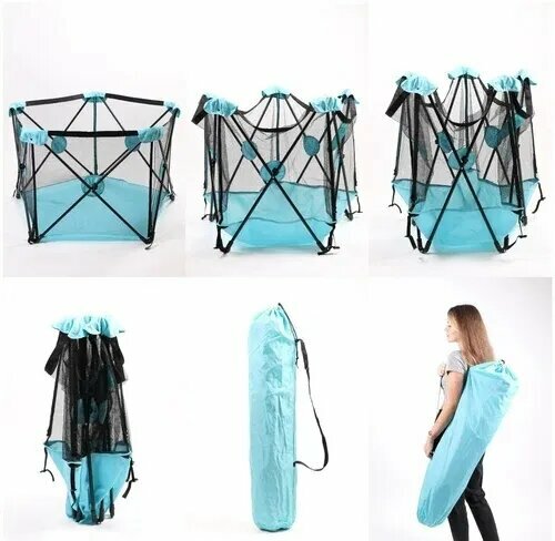 Игровой манеж "2030567161", складной, для дома и путешествий, бирюзовый, 140x140x70 см интересное:
