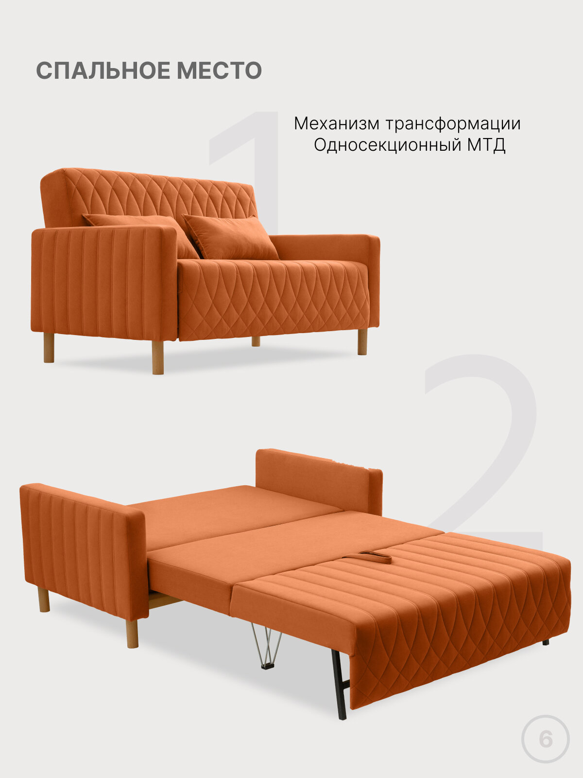 Диван раскладной прямой Майкл Лео 122х82х90 см, М12, диван кровать оранжевый 197х100 см, механизм-односекционный МТД