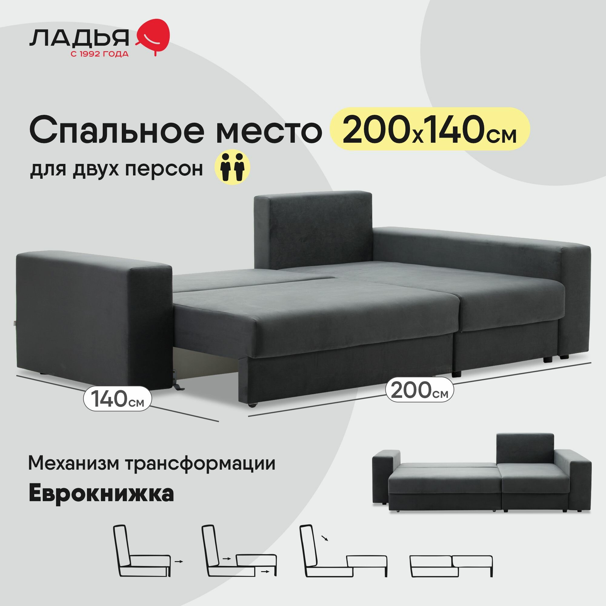 Угловой диван-кровать Майами, размер: 250х157х85 см, спальное место:200х140см, правый угол, Velutto 32