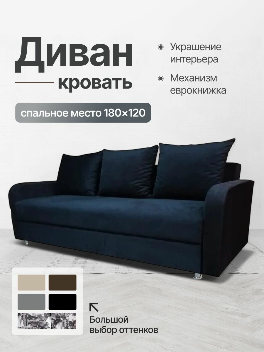 Диван-кровать Вектор еврокнижка, темно-серая рогожка, подушки принт Москва