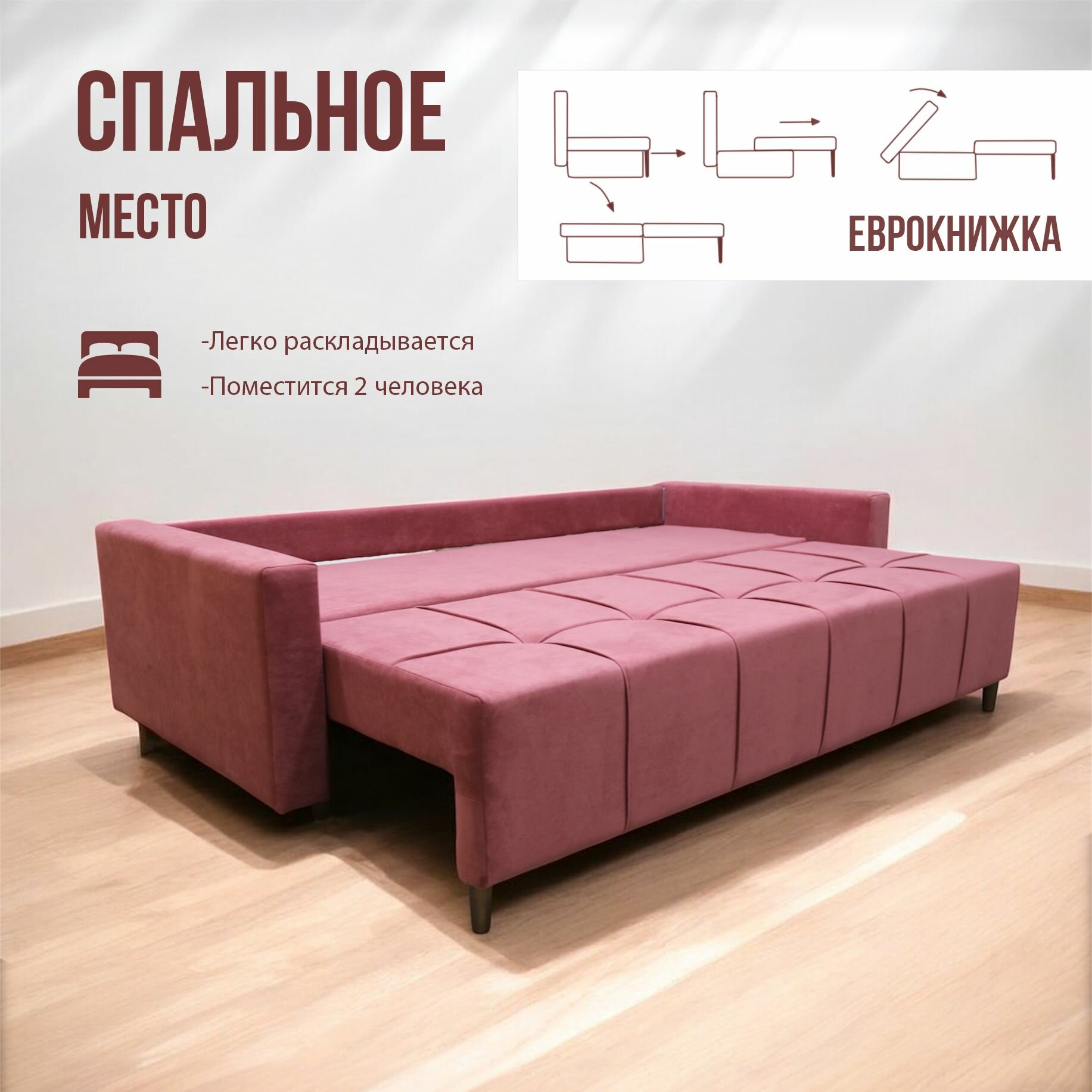 Диван-кровать "Азета 17" механизм еврокнижка, цвет розовый, ткань Джоя