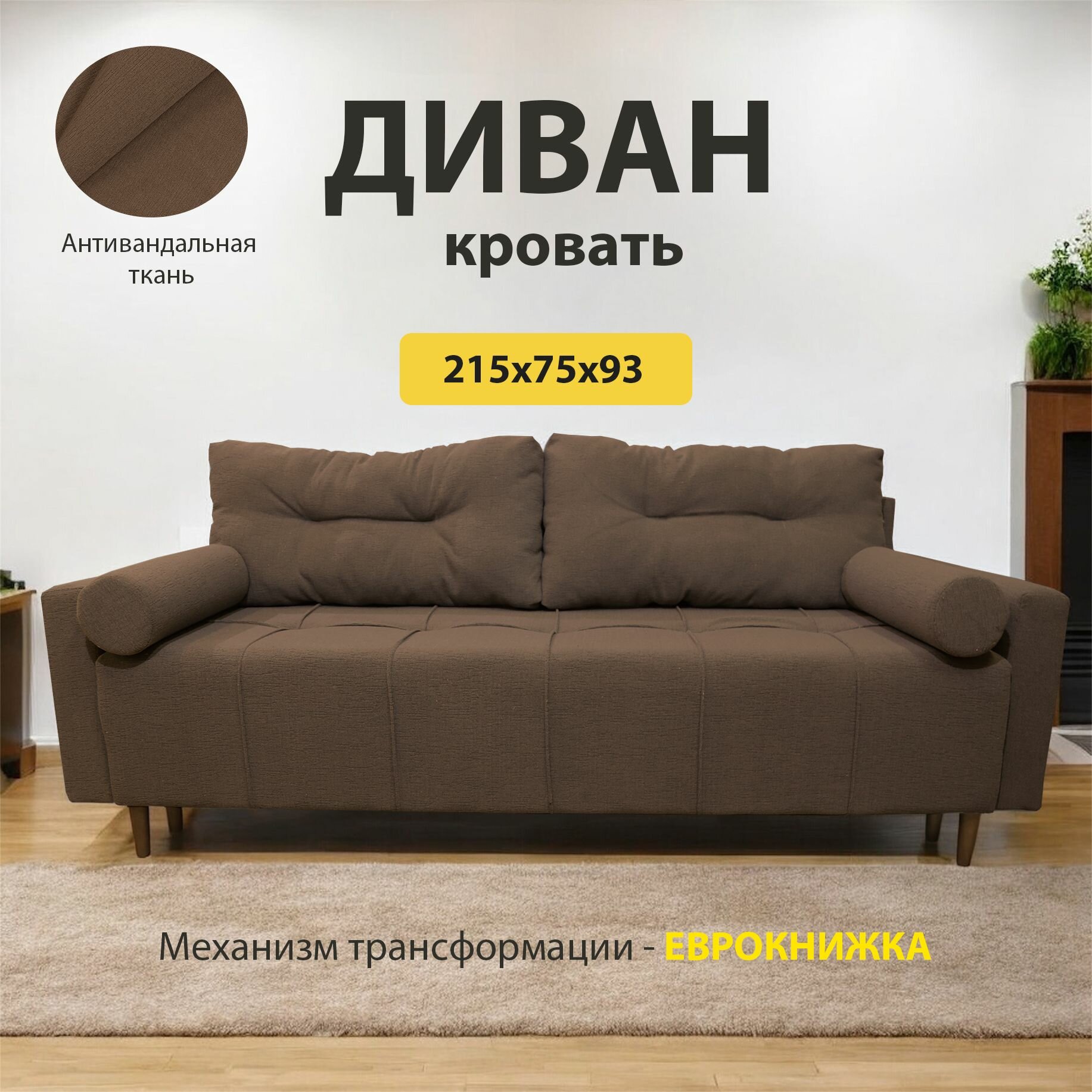 Купить Диван-кровать "Азета 17" механизм еврокнижка, цвет коричневый, ткань Модерно