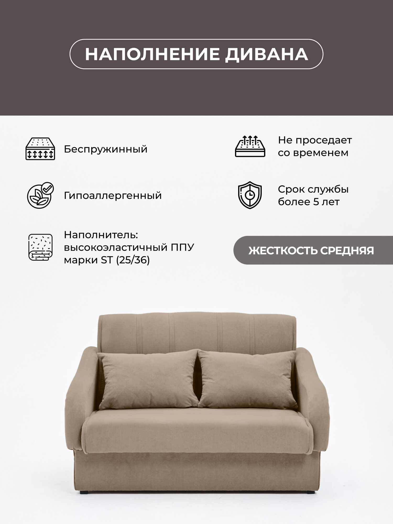 Диван-кровать раскладной двухспальный Тедди беспружинный, антивандальный велюр, размер 140*90*92, цвет бежевый интересное: