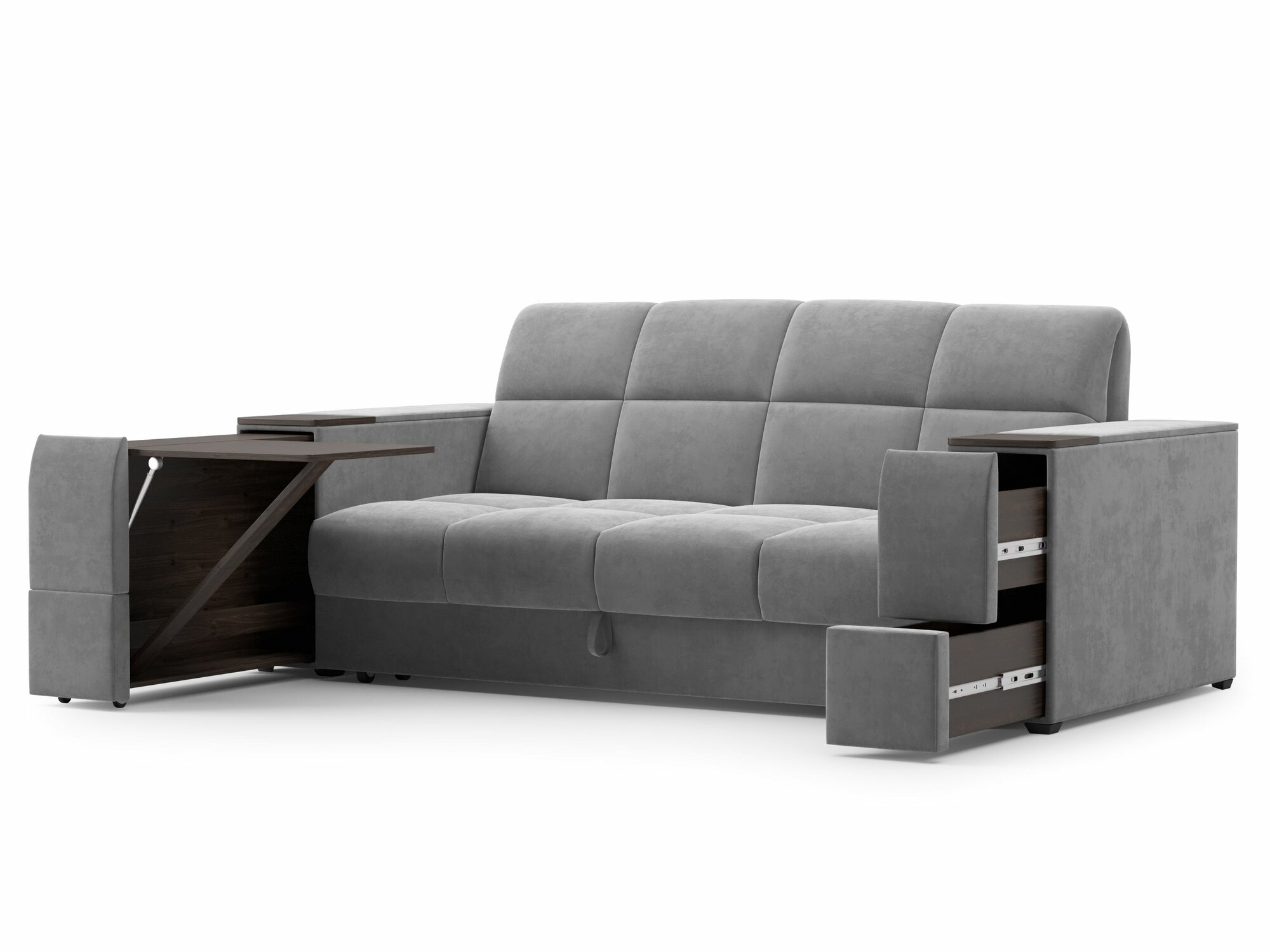 Купить Диван-кровать аккордеон, большое спальное место 160х200, светло-серый / венге, матрас ППУ, габарит 207 см со столиком и ящиком для белья