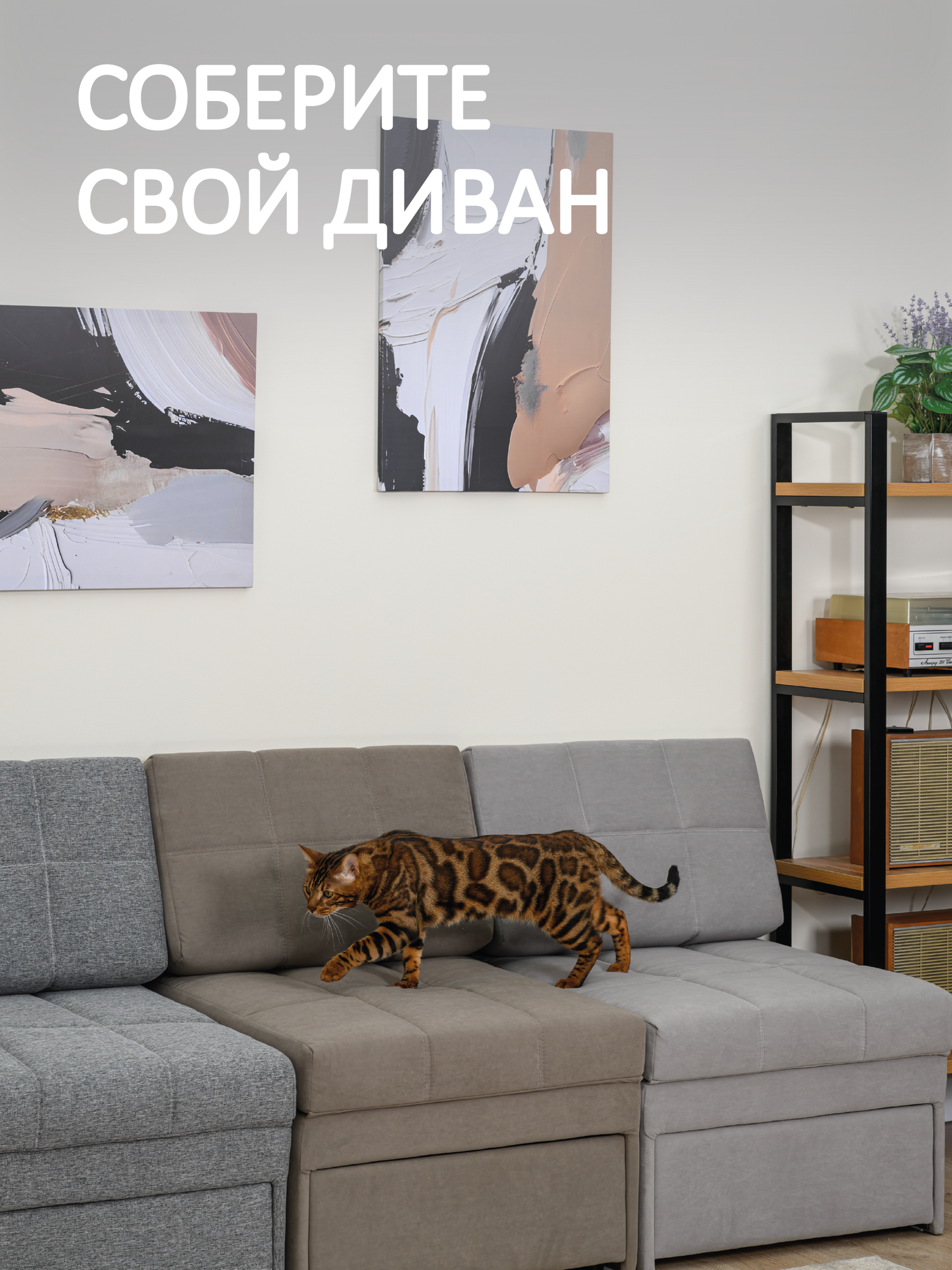 Диван-кровать раскладной 141x77x83 Romack Merlin Серый пух выкатной механизм с ящиками для хранения