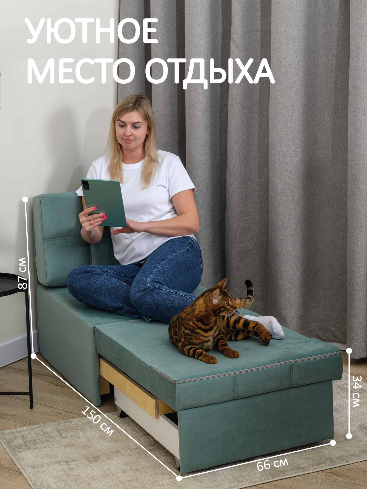 Кресло-кровать раскладное 108x77x83 Romack Merlin Мята диван-кровать выкатной с ящиком для хранения