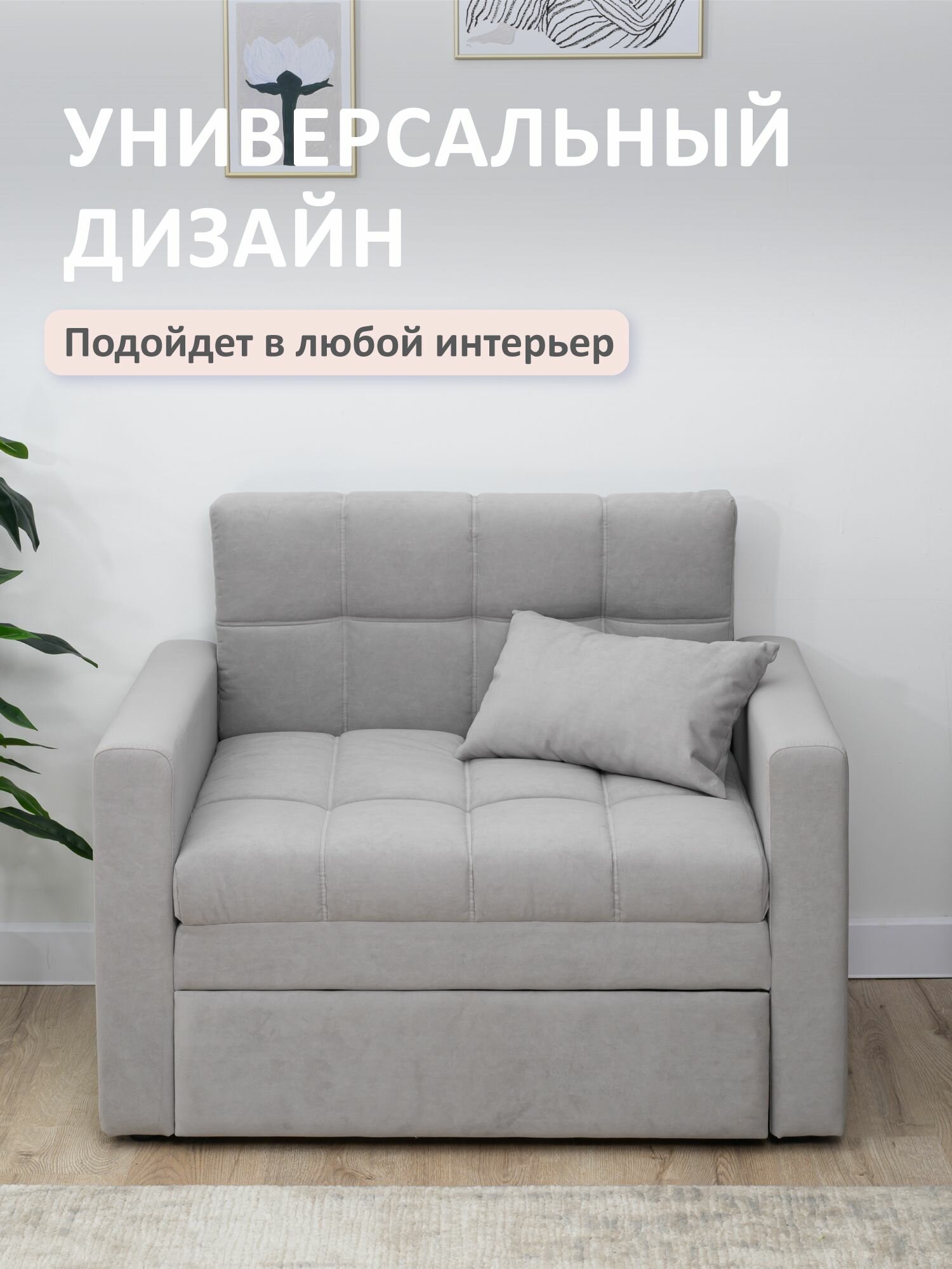 Купить Кресло-кровать раскладное 108x77x83 Romack Merlin Серый пух диван-кровать выкатной с ящиком для хранения