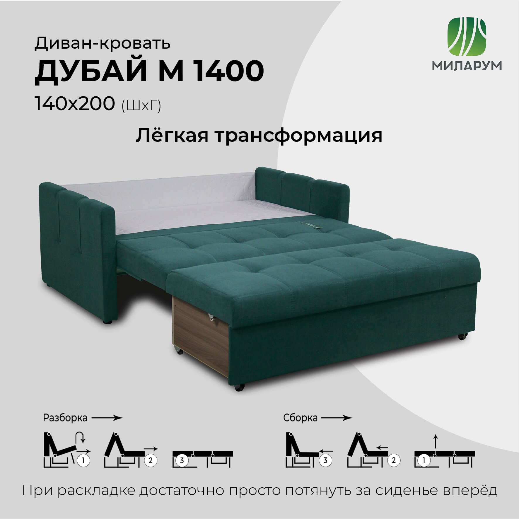 Диван-кровать Миларум "Дубай 1400", диван прямой, диван раскладной, цвет бирюзовый, велюр, 156 см х 95 см интересное: