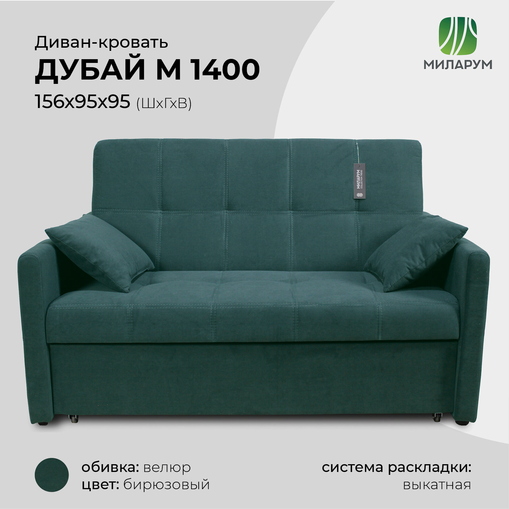 Купить Диван-кровать Миларум "Дубай 1400", диван прямой, диван раскладной, цвет бирюзовый, велюр, 156 см х 95 см