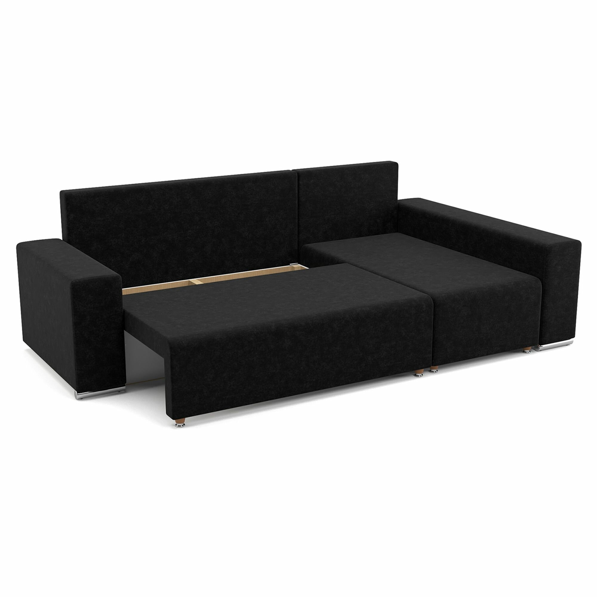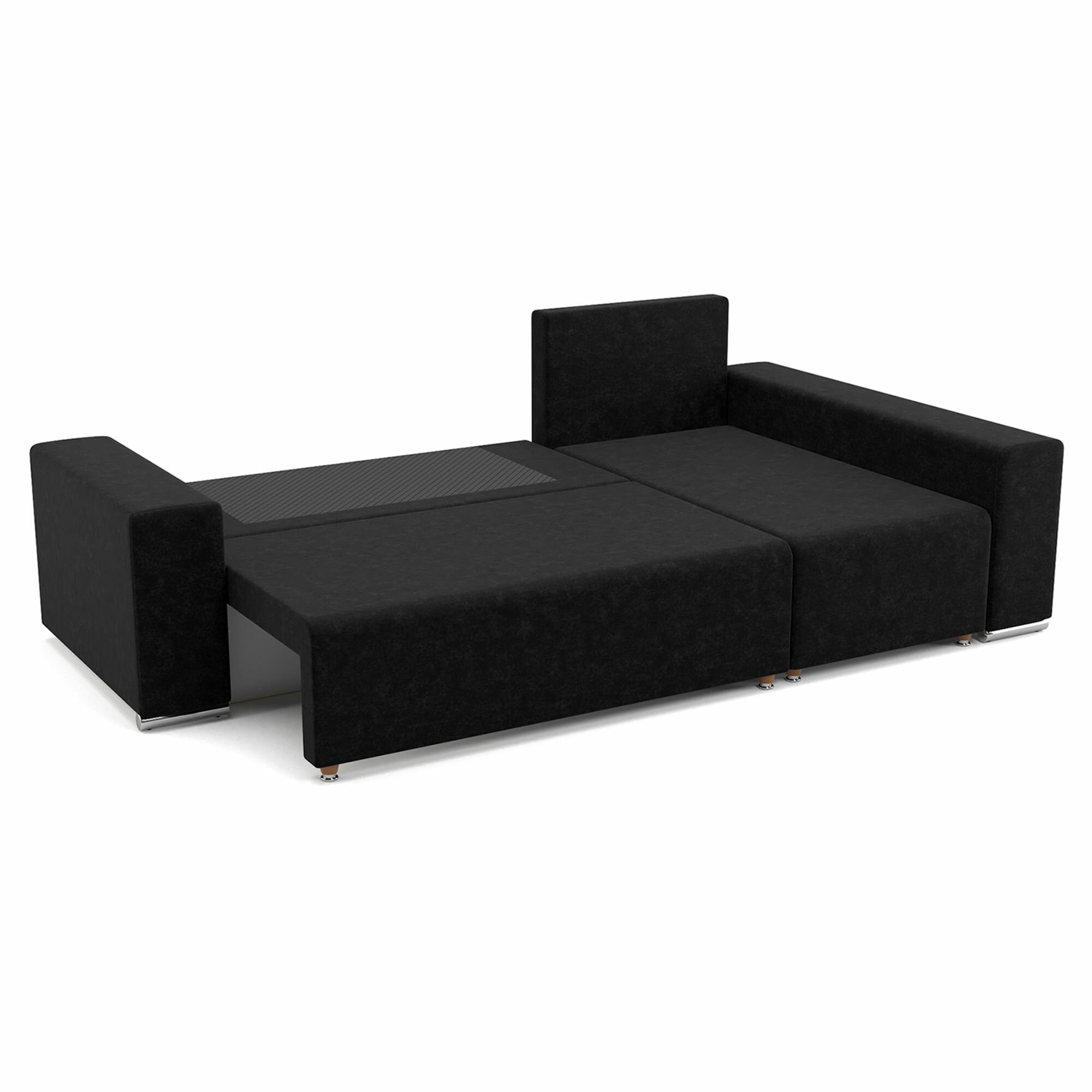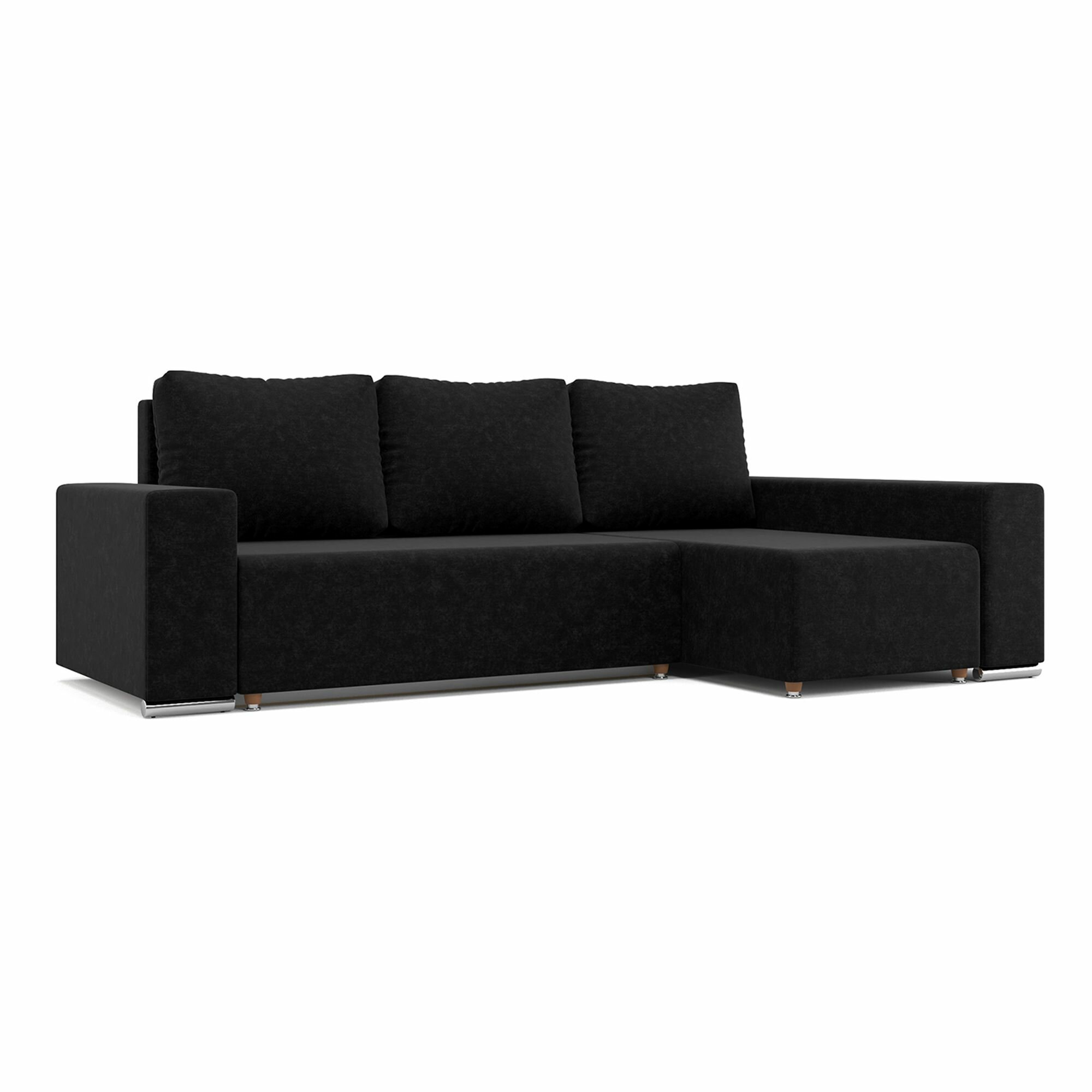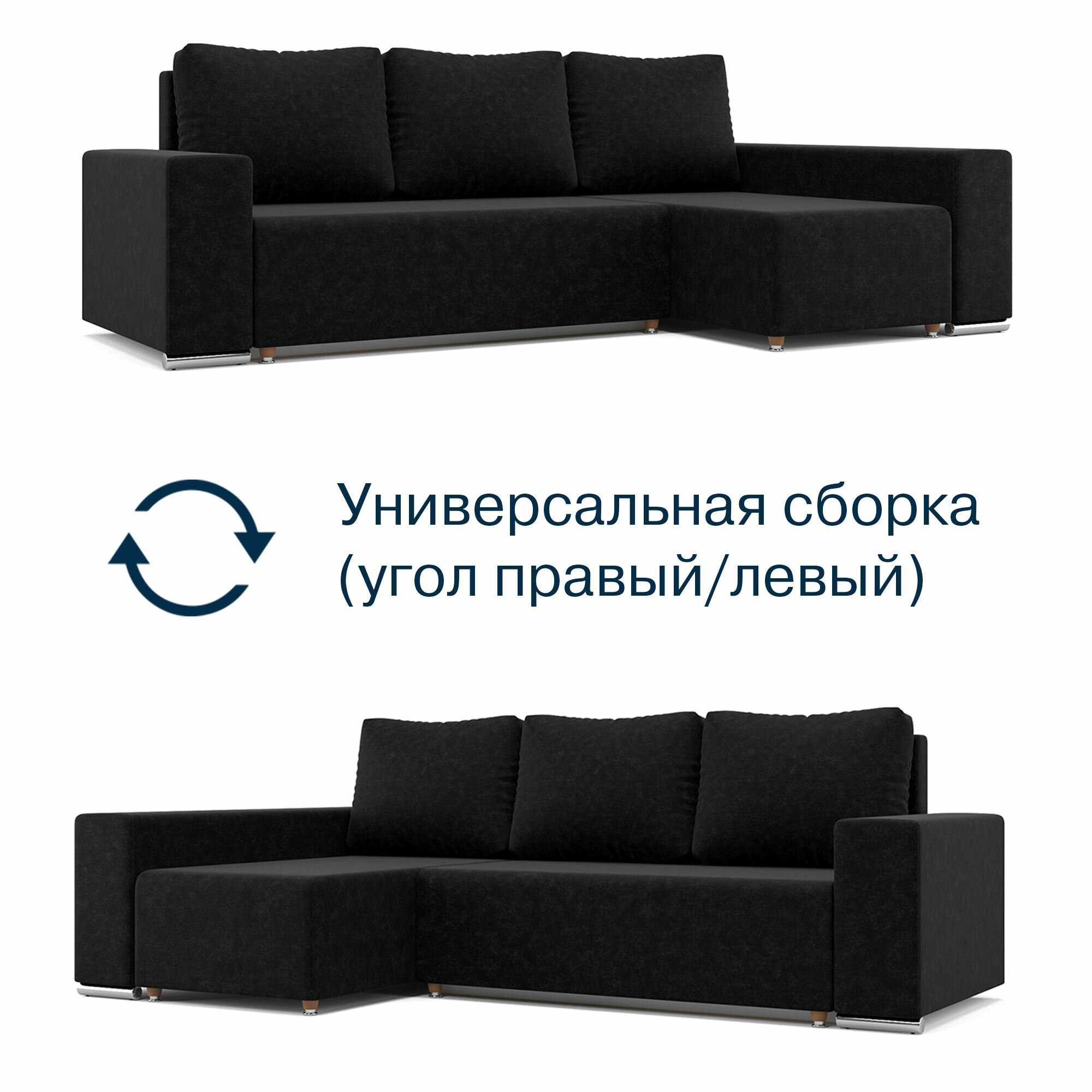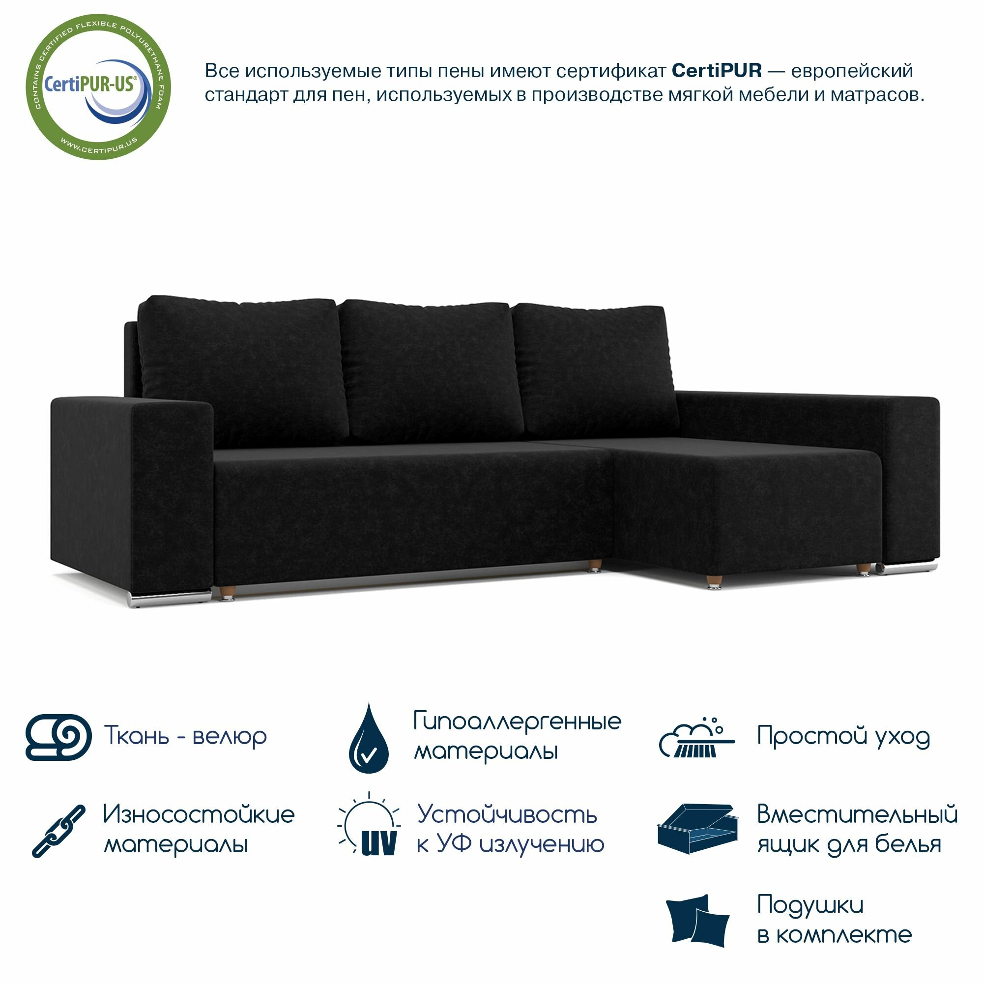 Купить Угловой диван-кровать Beneli техас с подушками, с ящиком для хранения, черный, Микровелюр, механизм Еврокнижка, 240х134х85см, 1шт
