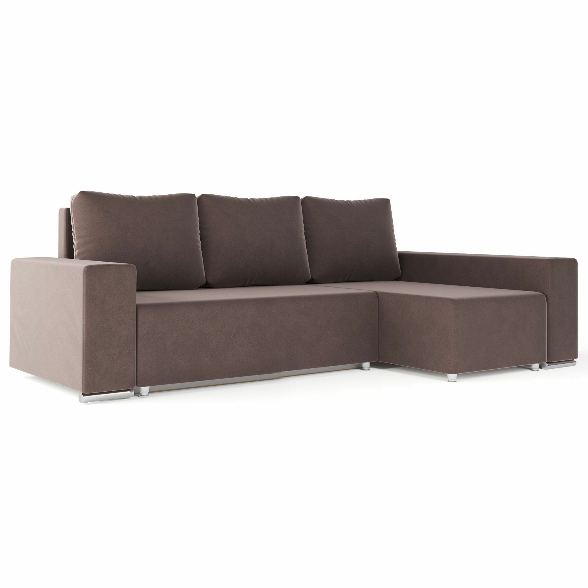 Купить Угловой диван-кровать Beneli техас с подушками, с ящиком для хранения, коричневый, велюр, механизм Еврокнижка, 240х134х85см, 1шт
