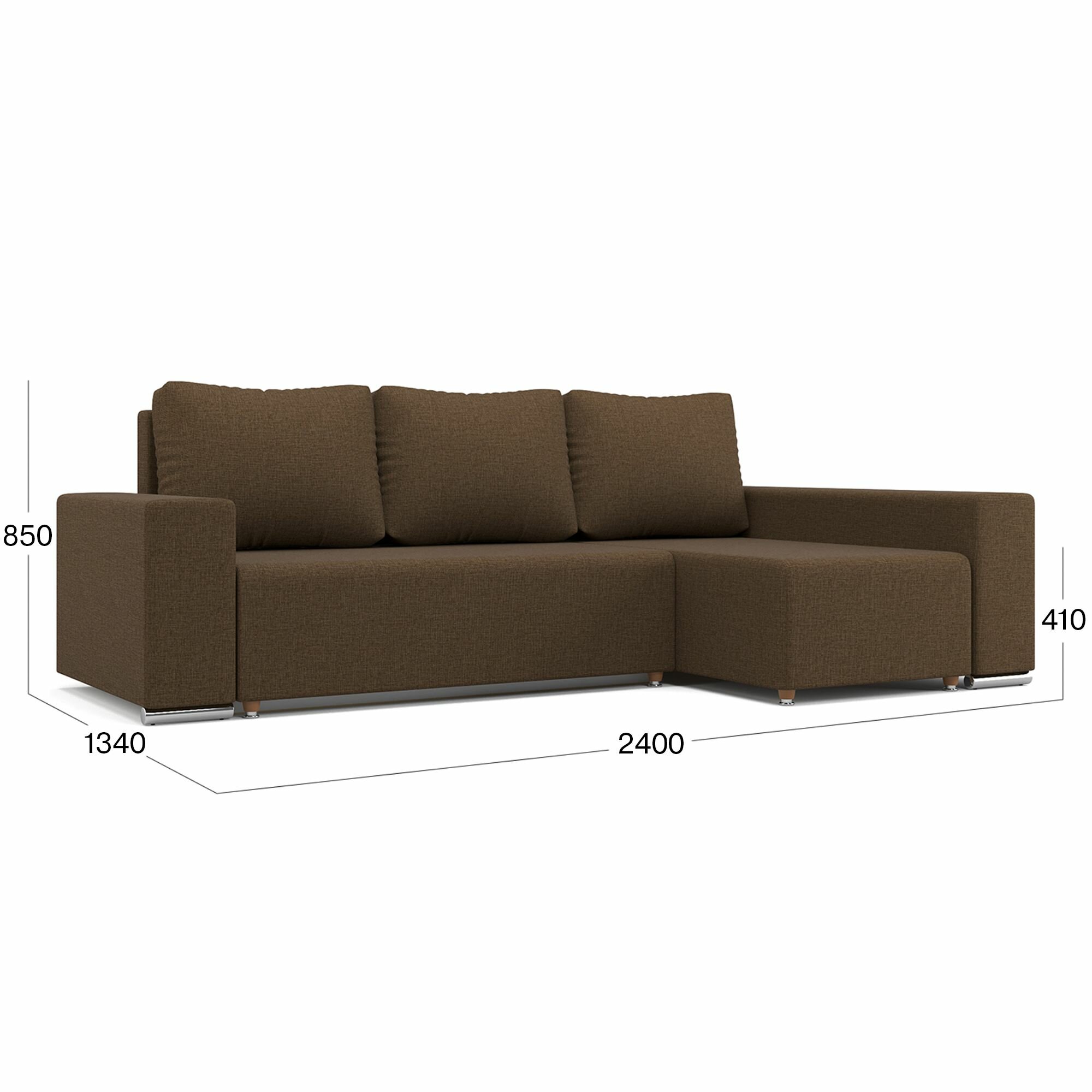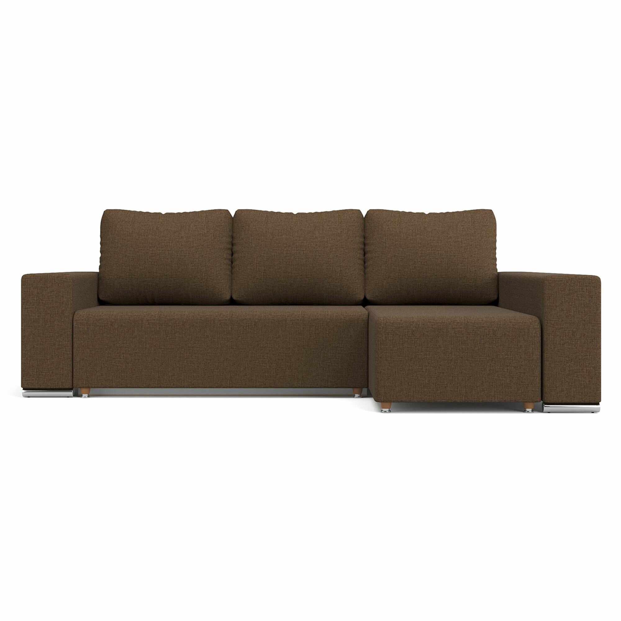 Купить Угловой диван-кровать Beneli техас с подушками, с ящиком для хранения, коричневый, Рогожка, механизм Еврокнижка, 240х134х85см, 1шт