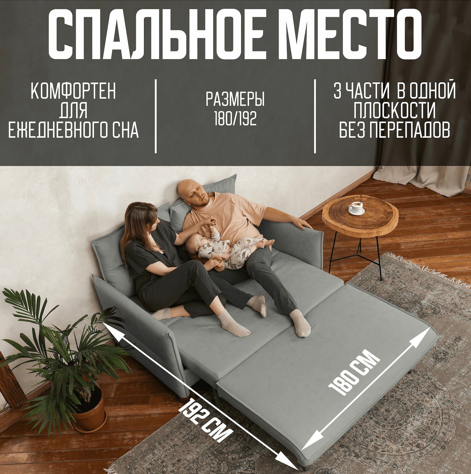 СохранитьLEO Диван-кровать COMFO, механизм Раскладной, серый 200*95*93 интересное: