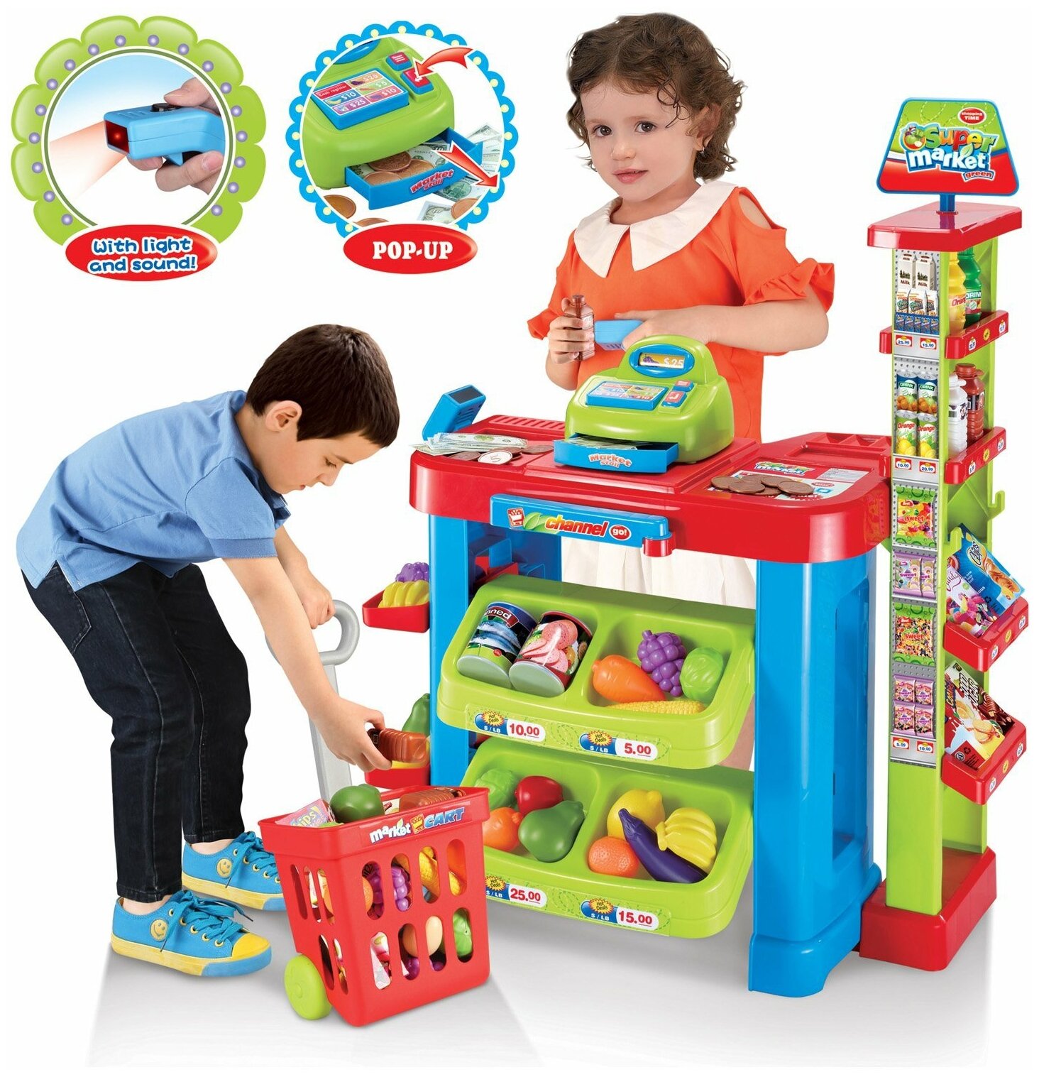 Купить Игр. наб. Магазин, в компл. стойка, корзина, аксесс.47 предм., свет, эл.пит.2*AA не вх. в компл., кор
