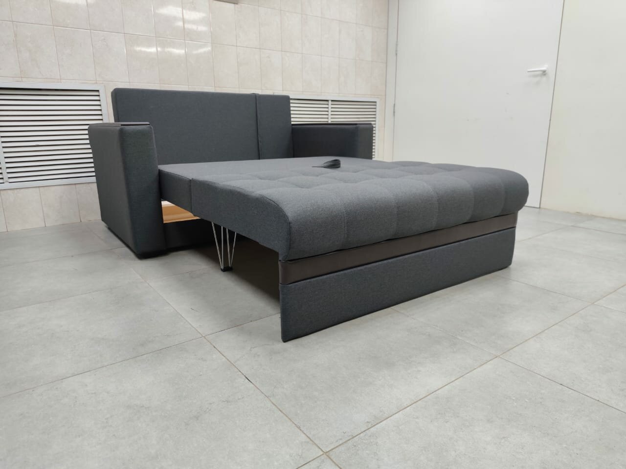 Прямой диван Атланта Мини 120 Темно-серая Рогожка, выкатной, 153х90х80 см, с ящиком для белья