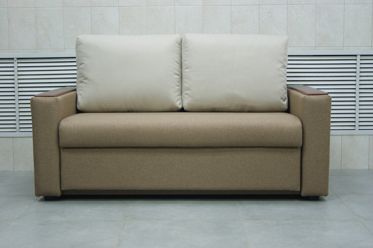 Купить Прямой диван Дубай коричнево-бежевая рогожка, выкатной, 172х93х82 см, с ящиком для белья