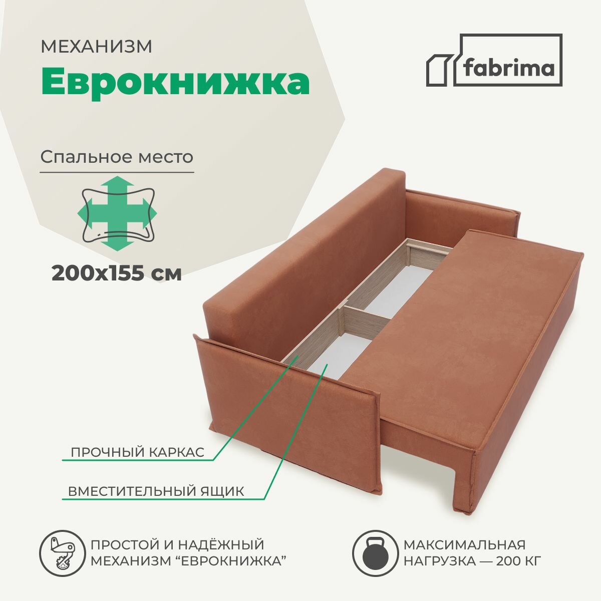 Купить Прямой диван-кровать Джули, раскладной, еврокнижка с ящиком для белья 215х98х80, Терракотовый велюр
