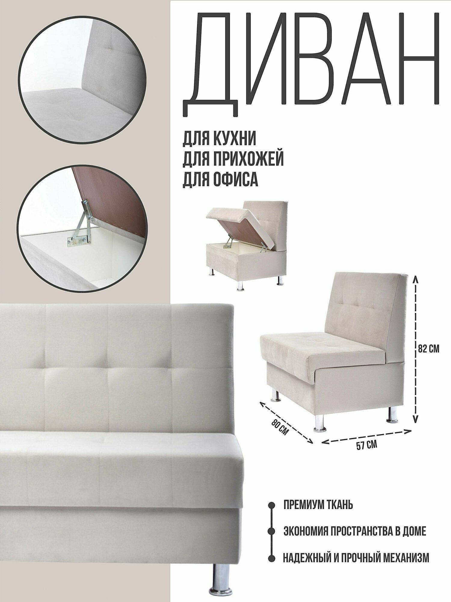 СохранитьДиван 80 с ящиком для хранения из износостойкого материала для кухни, прихожей, балкона, офиса, примерочной велюр беж интересное: