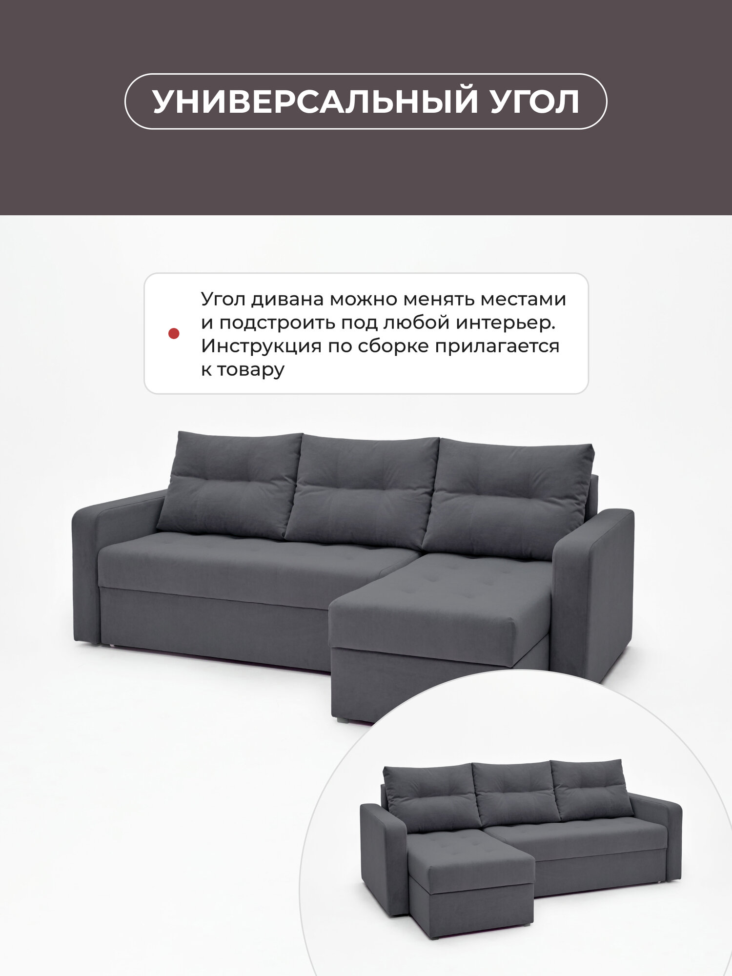 СохранитьДиван угловой раскладной двухместный Денди с универсальным углом, антивандальная ткань, 227*147*77 Еврокнижка, графит интересное: