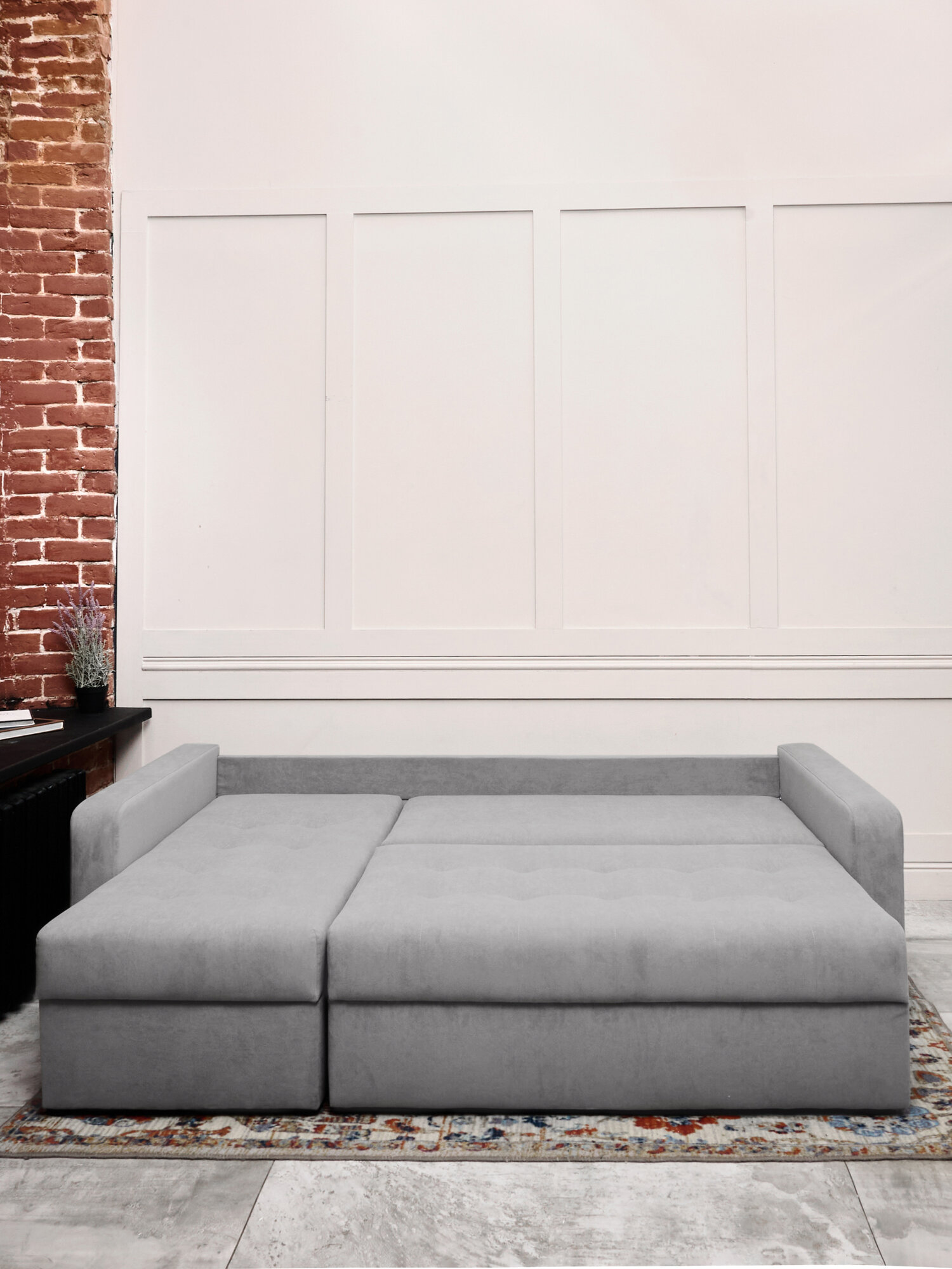 Купить Диван угловой раскладной двухместный Денди с универсальным углом, антивандальная ткань, 227*147*77 Еврокнижка, серый