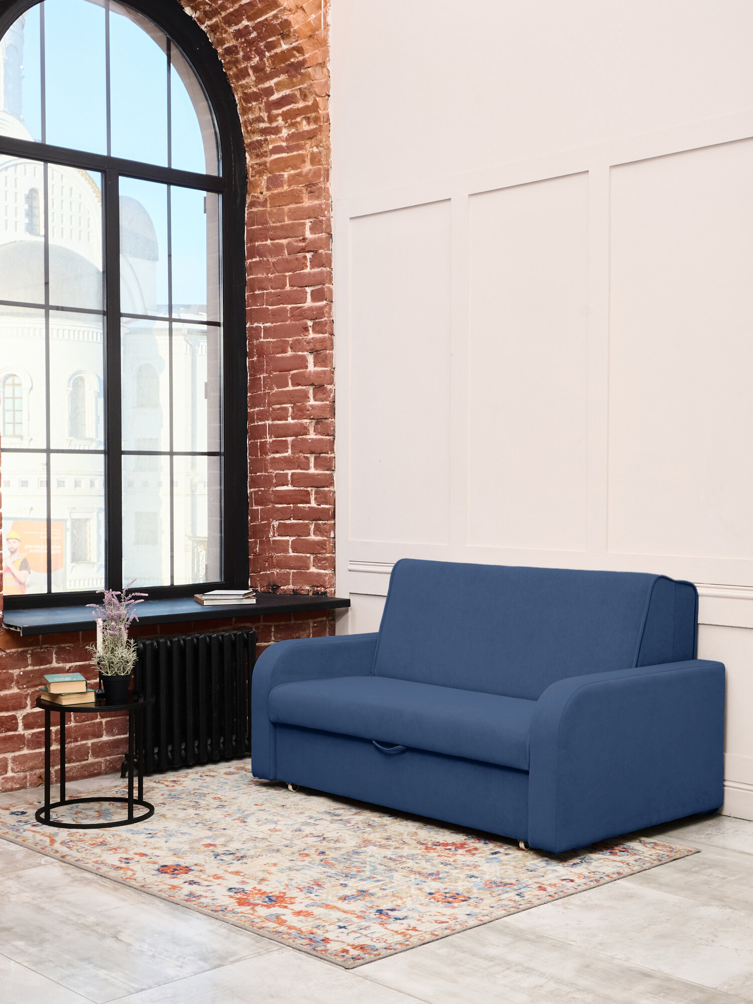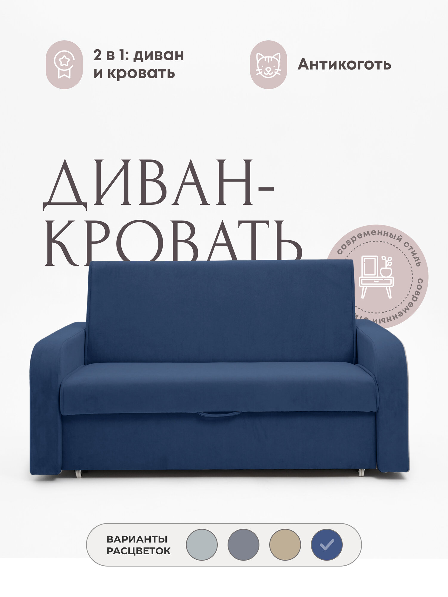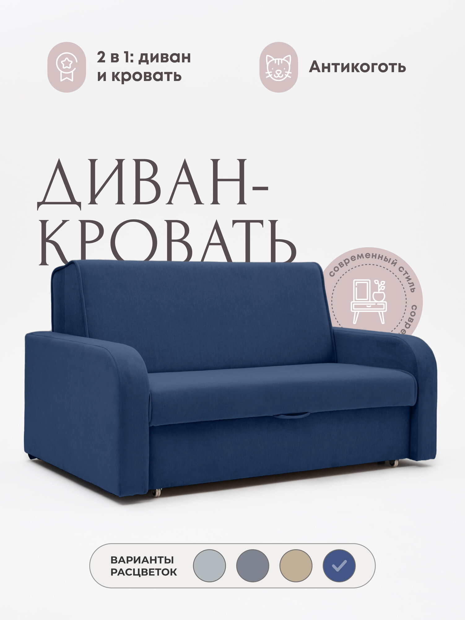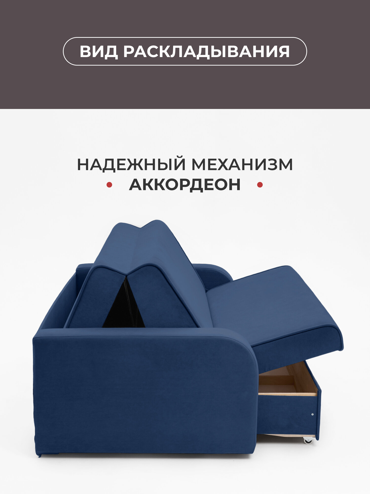 Купить Диван-кровать раскладной двухспальный Мартин 140, механизм Аккордеон, антивандальный велюр, 170*105*93, цвет синий