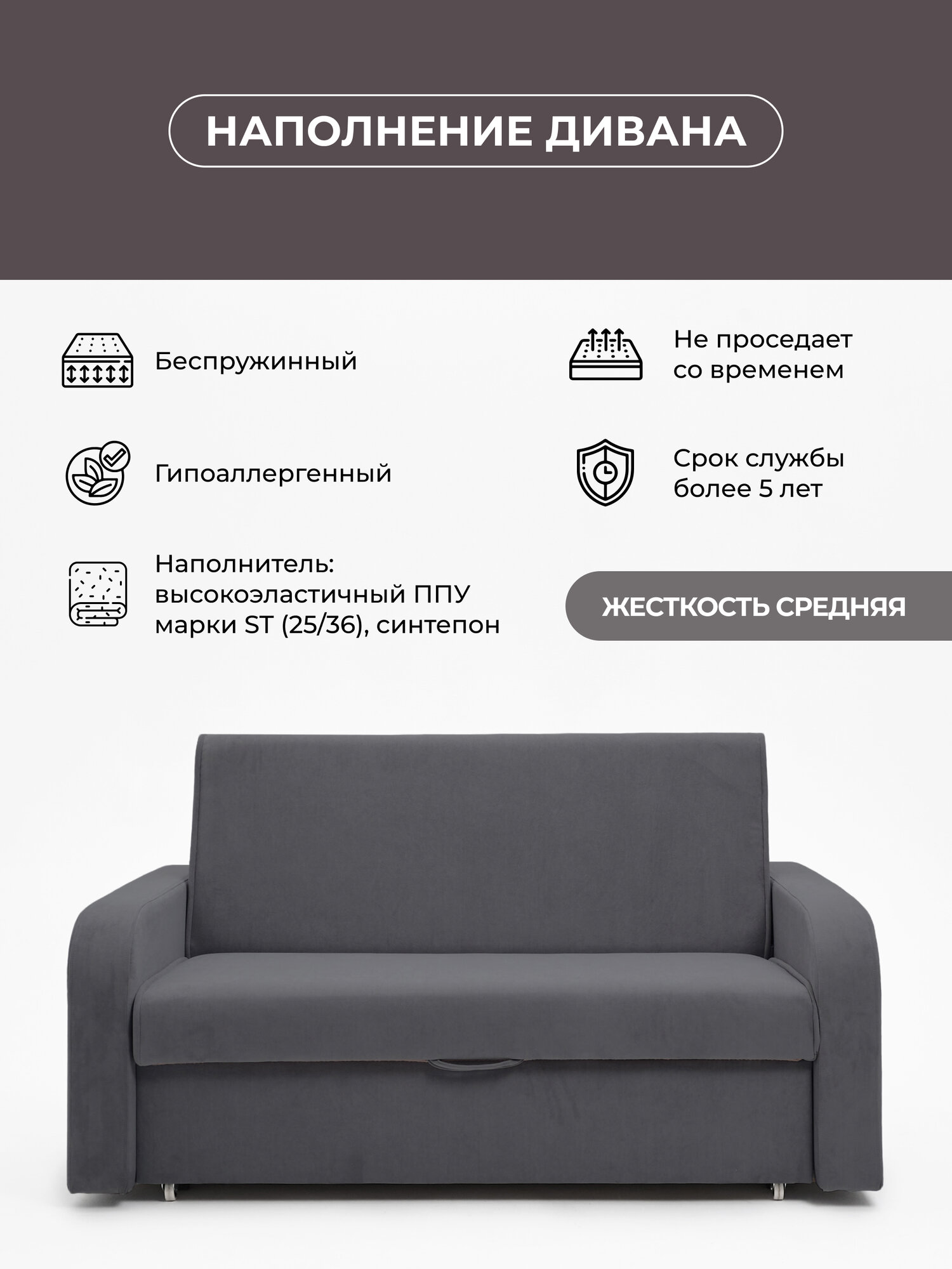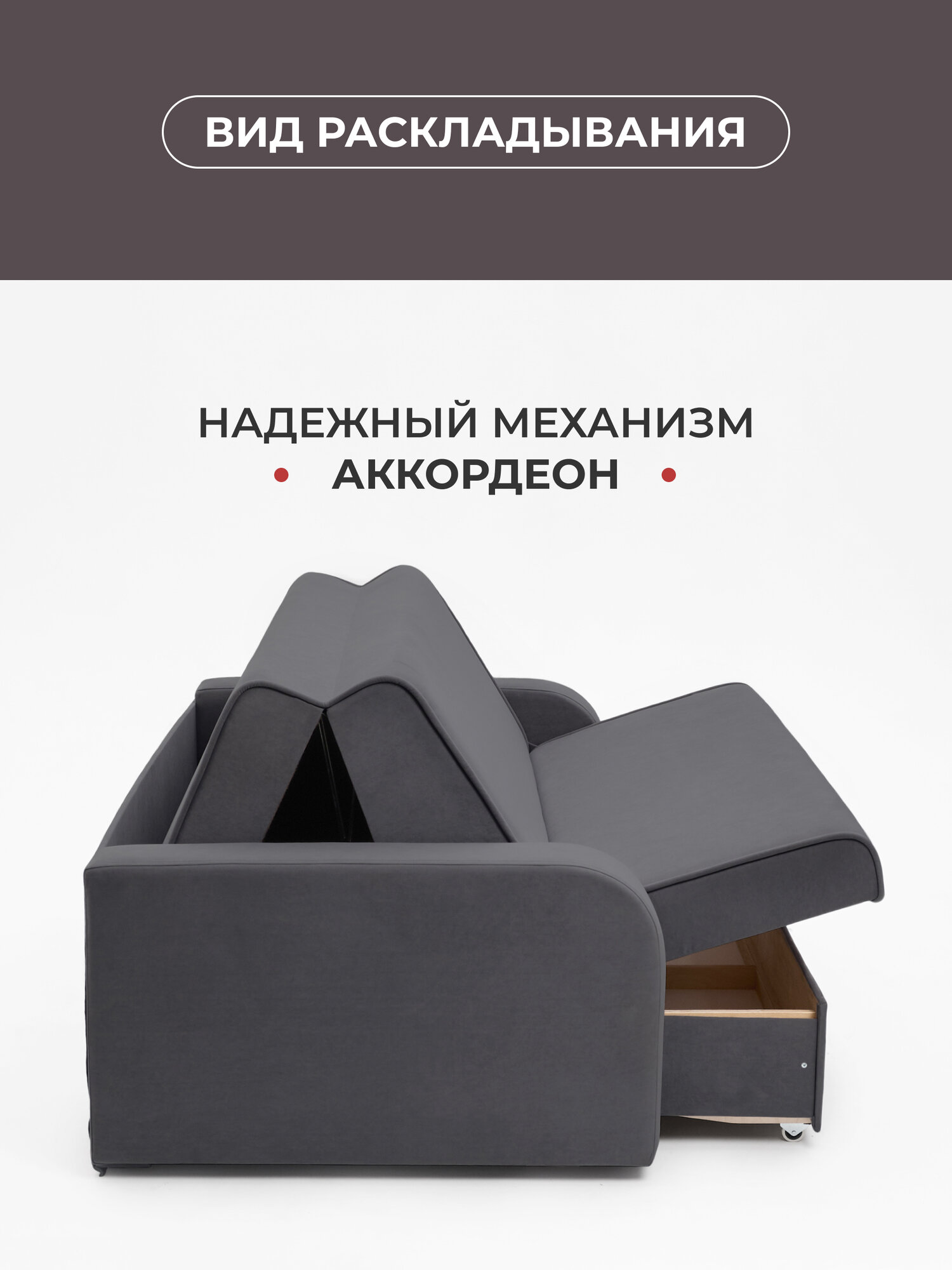 Купить Диван-кровать раскладной двухспальный Мартин 140, механизм Аккордеон, антивандальный велюр, 170*105*93, цвет темно-серый