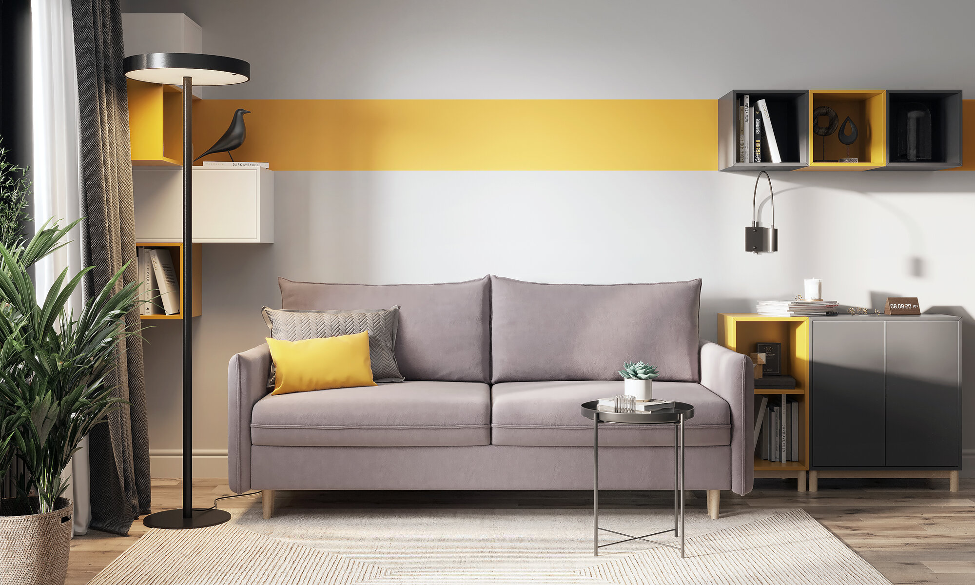 Диван-кровать раскладной прямой на ножках Сканди в гостиную, пантограф, двуспальный, велюр, серый, 212х96х90